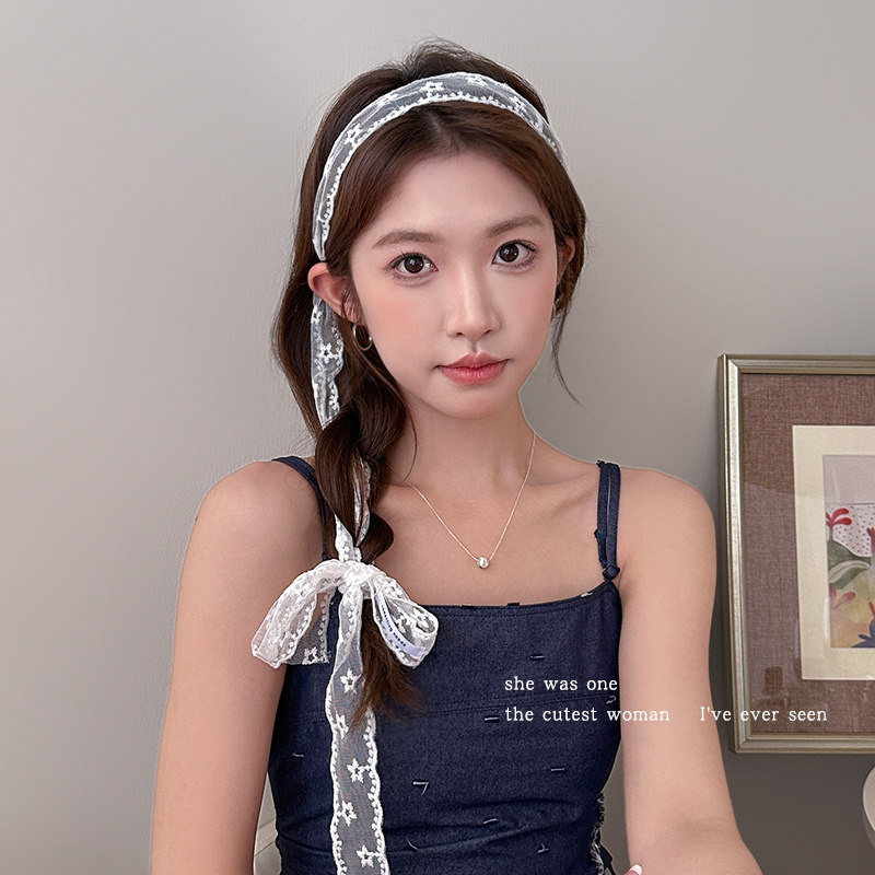 纯欲风白色蕾丝飘带绑头发带女夏季长条丝巾系脖领巾百搭辣妹发饰