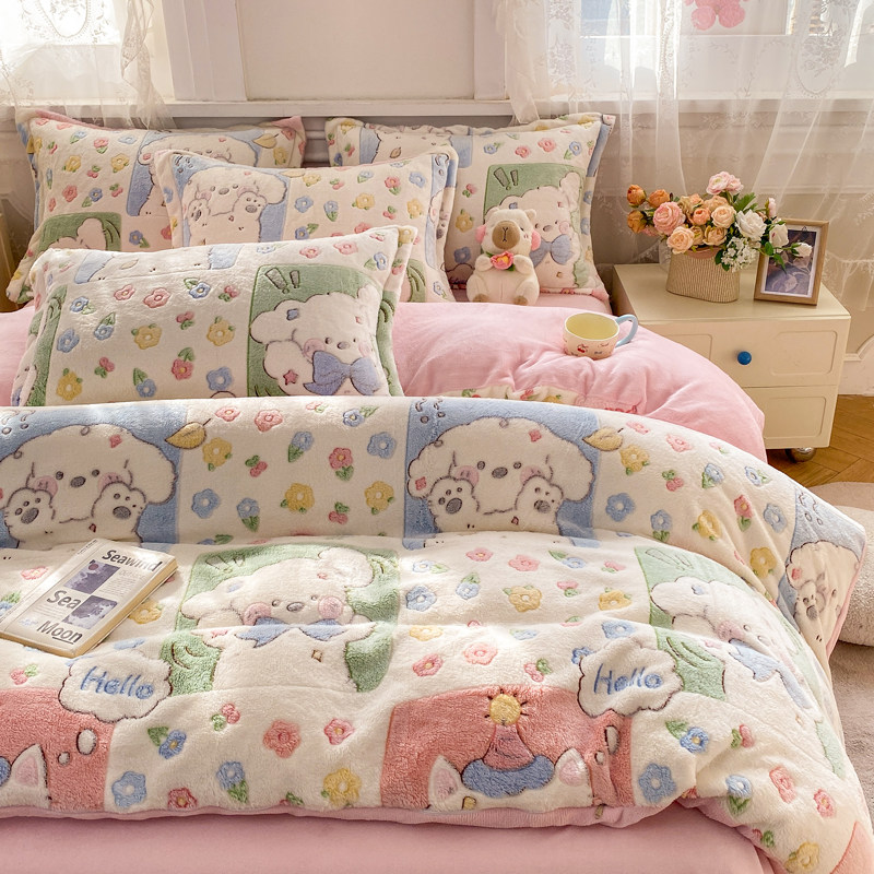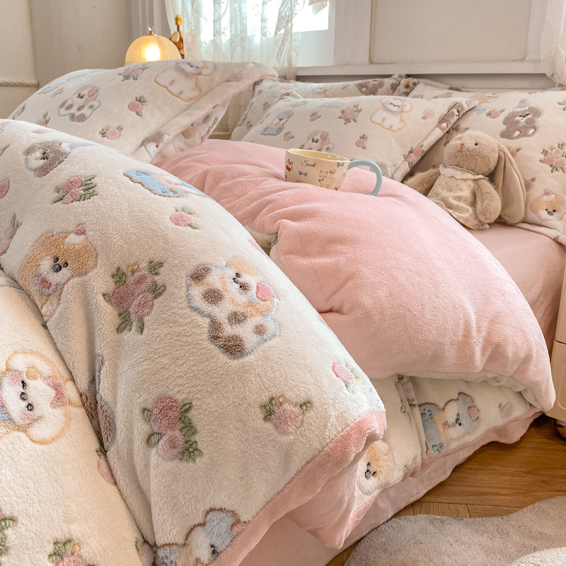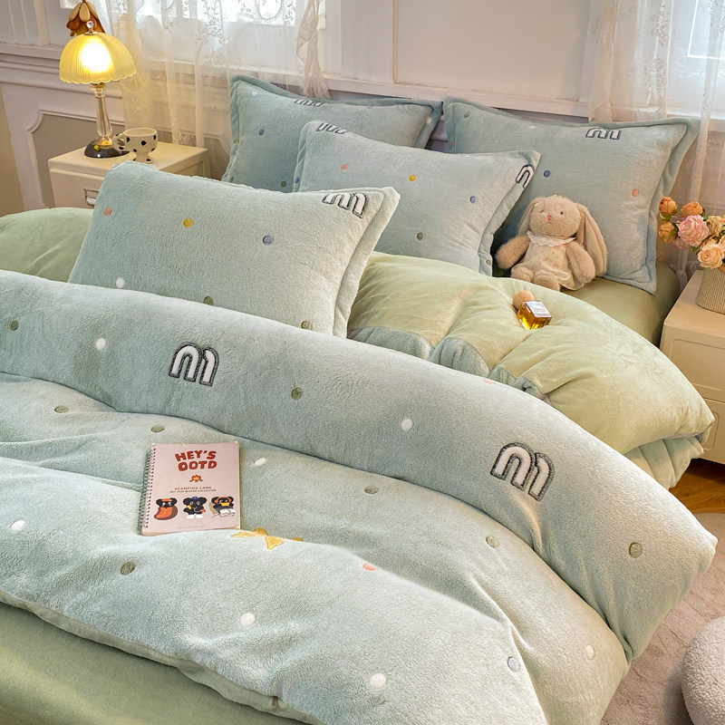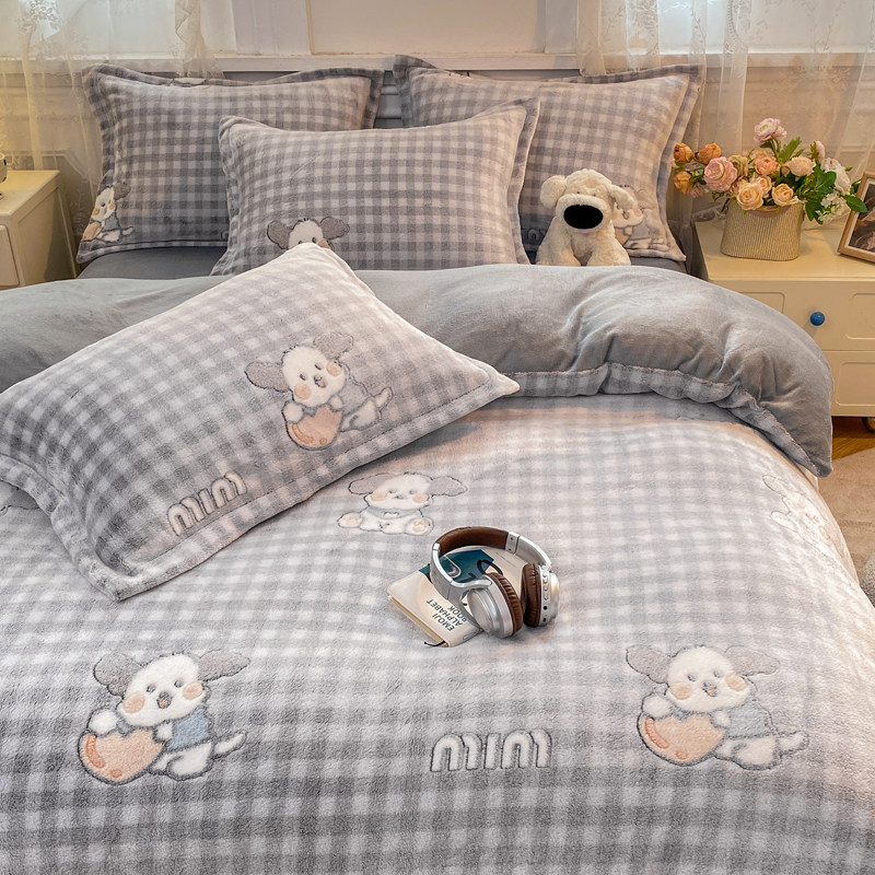 冬季加厚牛奶绒四件套双面珊瑚绒被套法兰绒儿童床单床笠床上用品