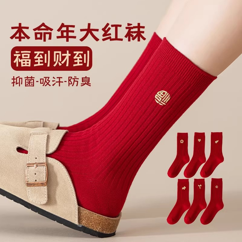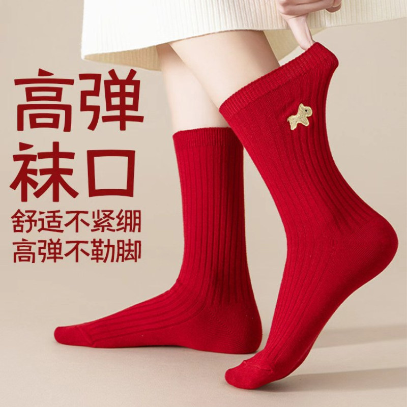 大红色本命年袜子男女款中筒袜马年2026属马新年秋冬情侣结婚长袜