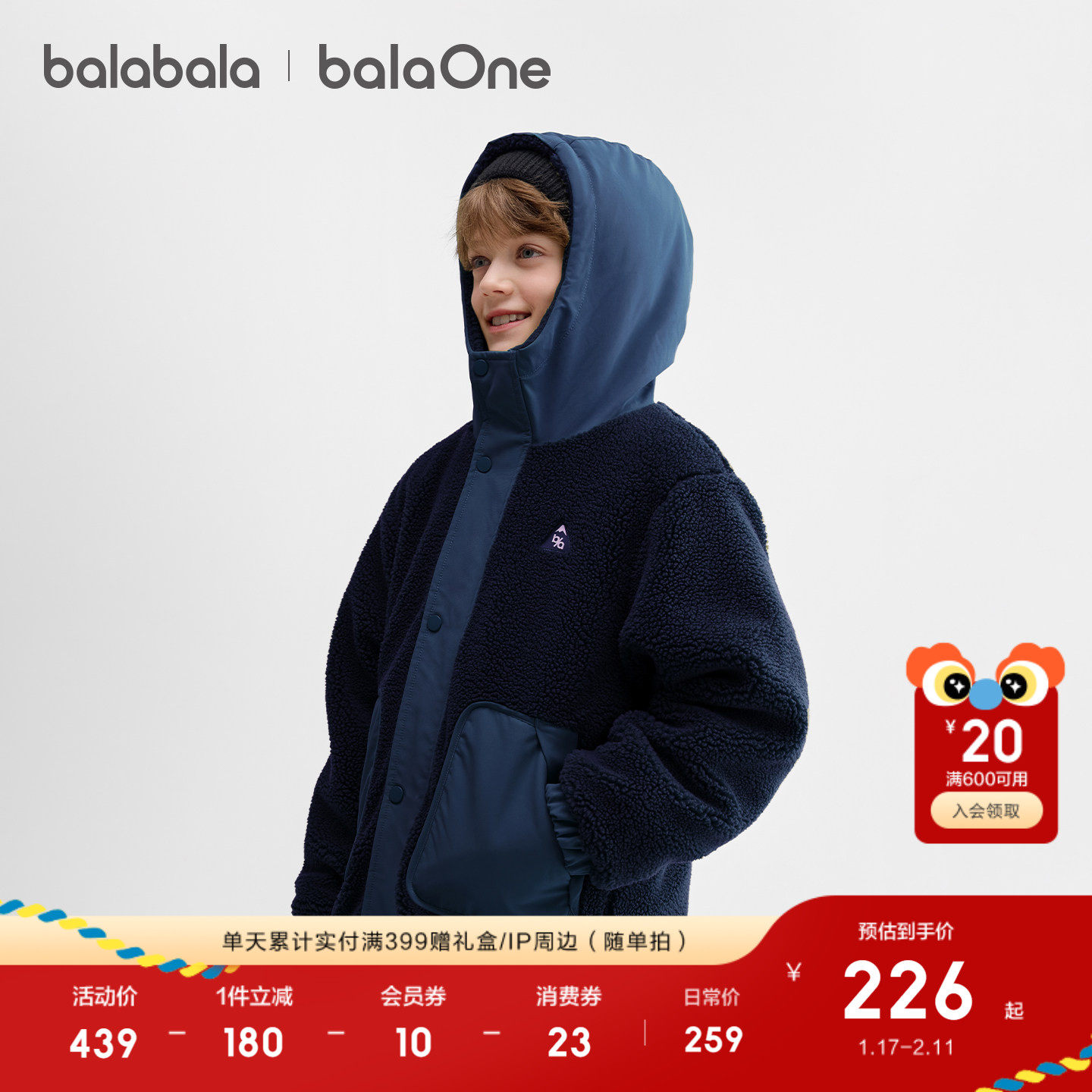 巴拉巴拉童装男童外套儿童棉服女童棉袄羊羔绒抗静电亲子装保暖潮