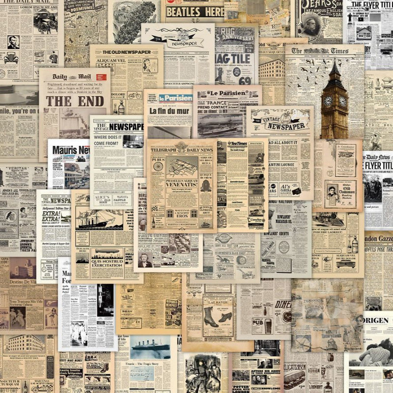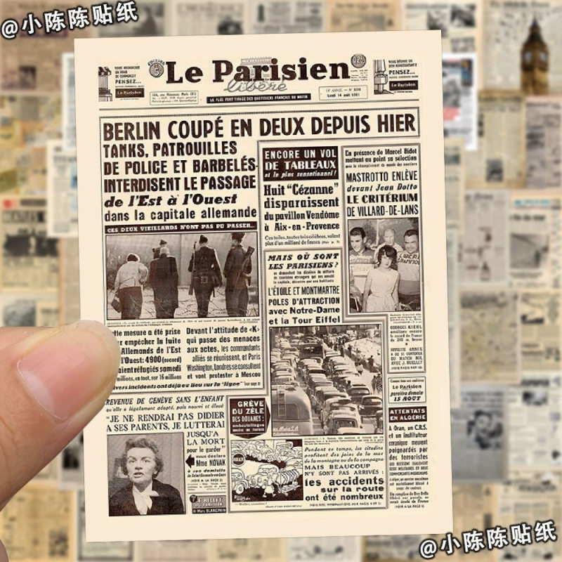 复古美式旧报纸贴纸126张DIY手机壳笔记本电脑头盔手账装饰贴画