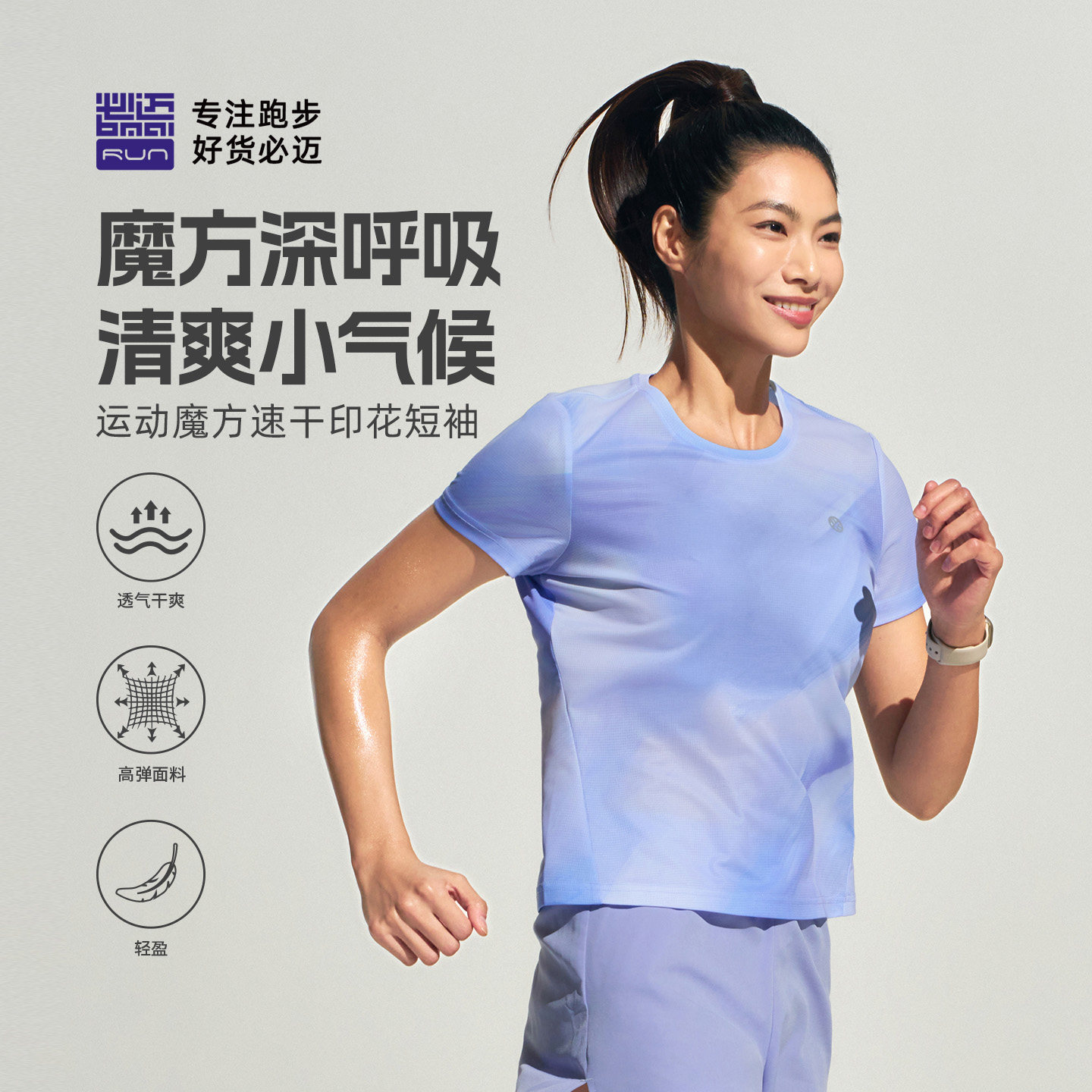 必迈26新款运动魔方速干印花短袖男女透气圆领T恤跑步健身上衣