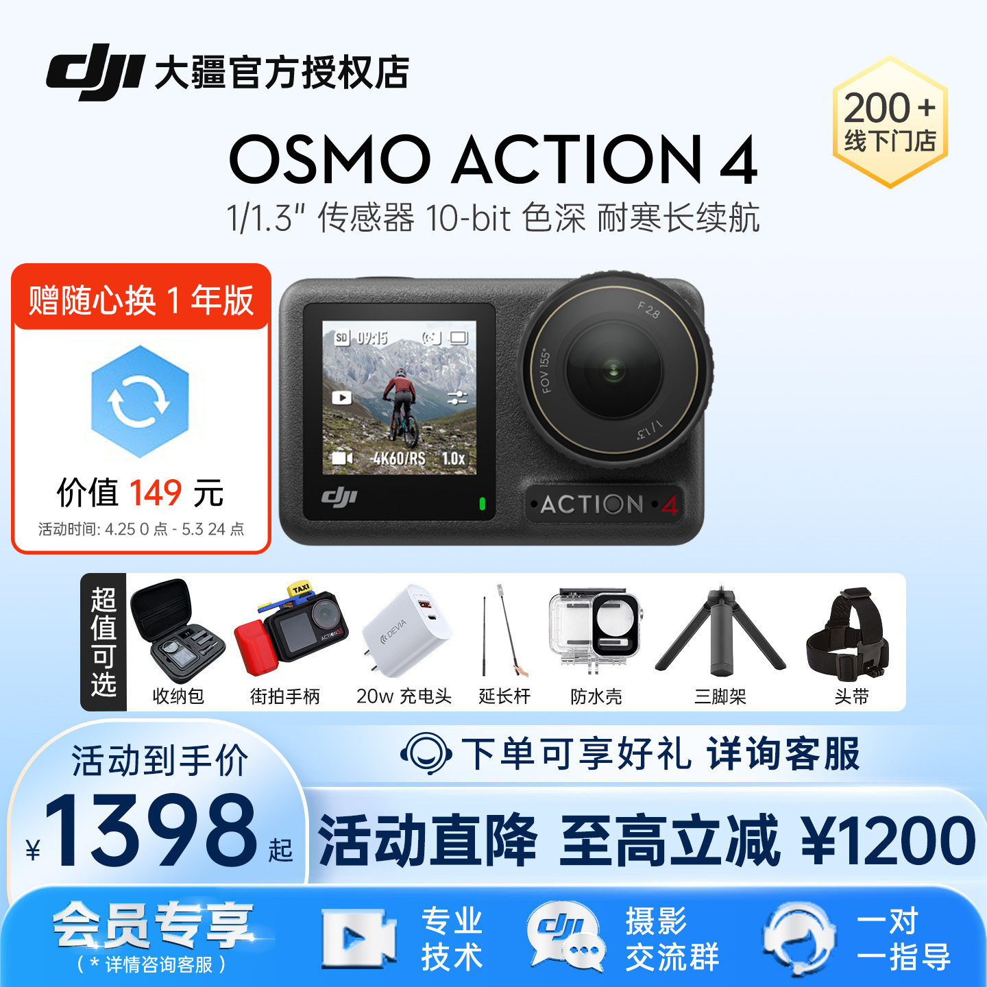 【买赠随心换】大疆 DJI Osmo Action 4 运动相机 vlog摄像机户外