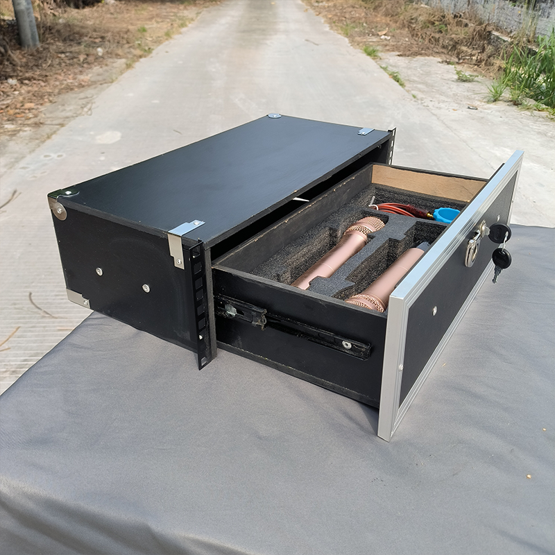 2U/3U木质机柜抽屉带锁带话筒保护棉2支无线麦克风收纳航空箱配件