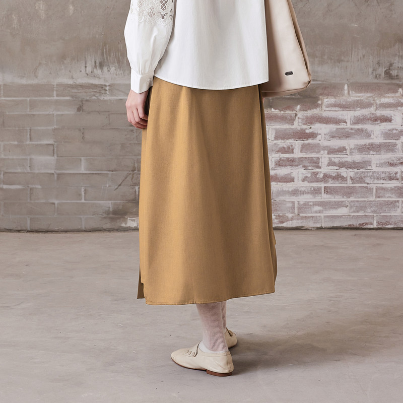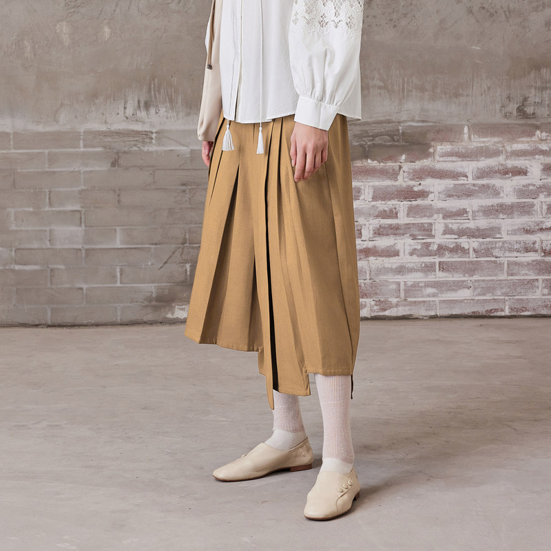 学院风|MSLAN春季美拉德减龄压褶A字设计感不规则半身裙MECV8303
