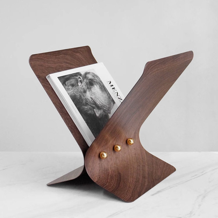 现代轻奢金属杂志架书报架摆件书房样板间收纳架售楼大厅软装