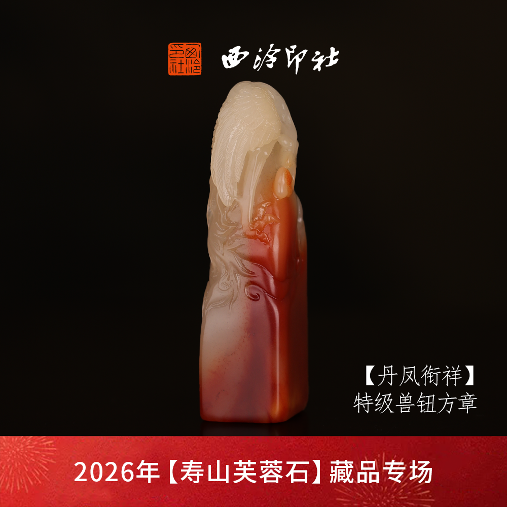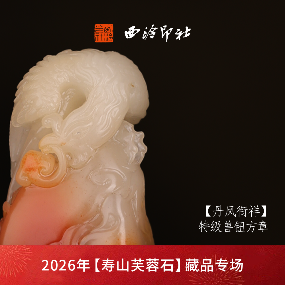 【特级】西泠印社寿山芙蓉石兽钮方章《丹凤衔祥》高档石材印章书法国画手工篆刻玉石方章定制落款孤品章