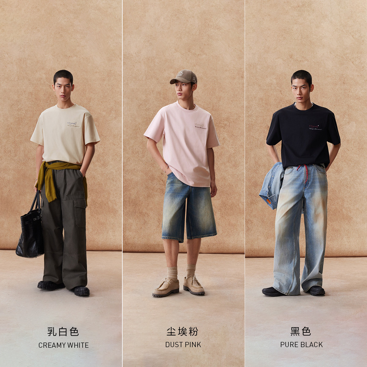 略宽松版型;圆领领型;胸前及背后刺绣字母