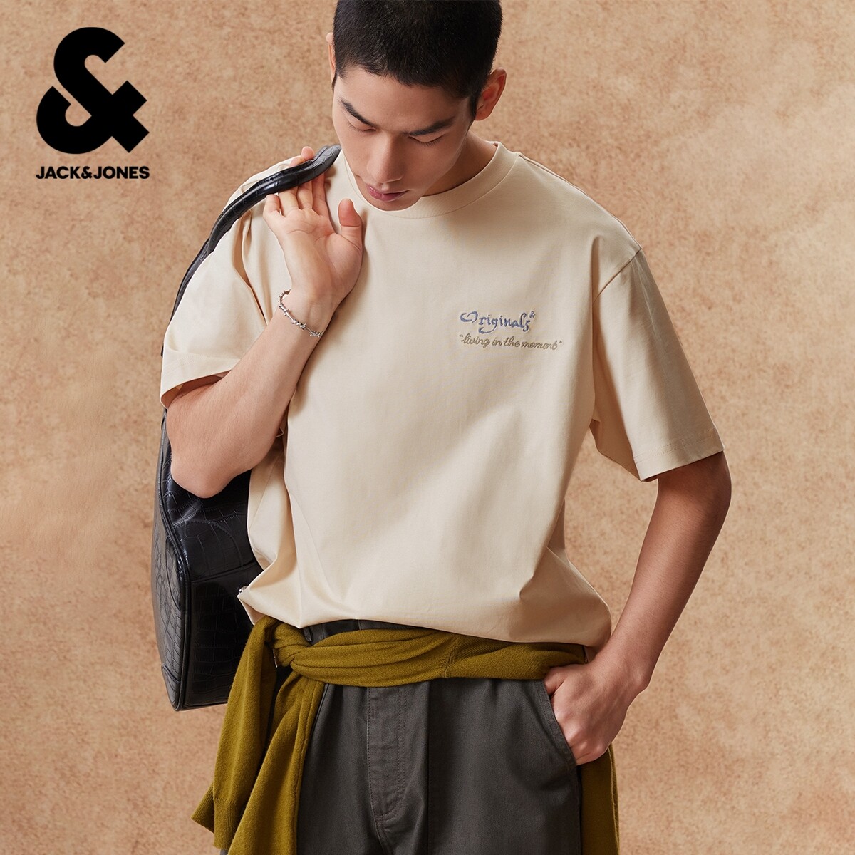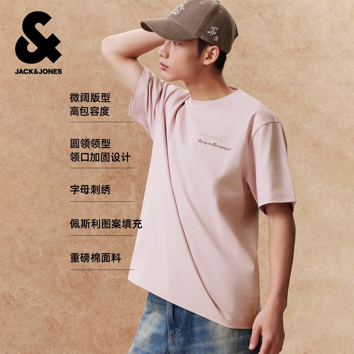【重磅纯棉】杰克琼斯男装T恤佩斯利印花LOGO宽松刺绣短袖打底衫