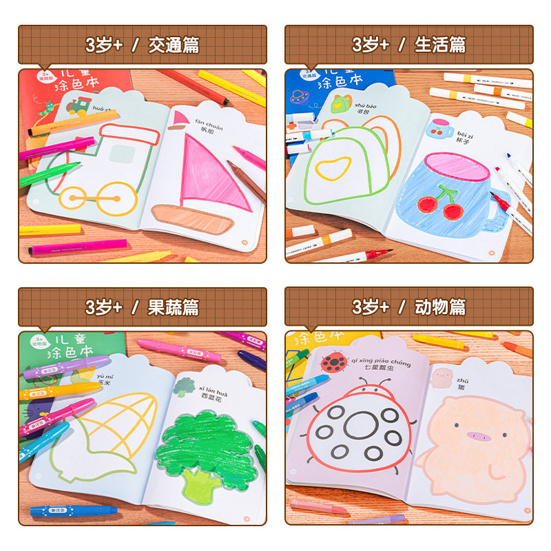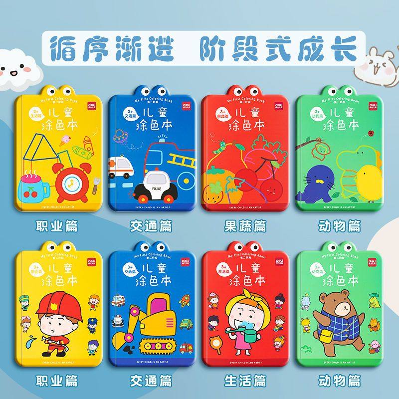 得力儿童画画本幼儿园涂色绘本2岁3岁宝宝填色涂鸦书图画册绘画工具套装小学生启蒙益智学习多功能书早教书