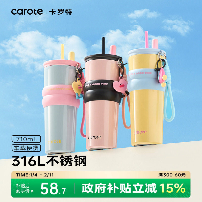 卡罗特吸管保温杯大容量女高颜值咖啡巨无霸冰霸水杯子生日礼物