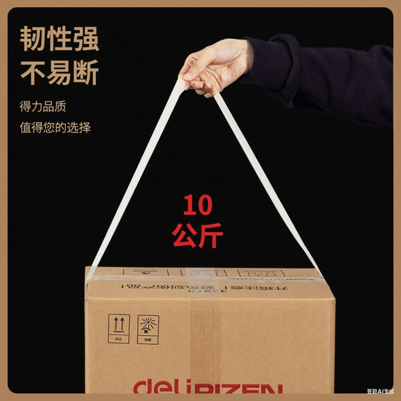 得力文具大卷透明胶带不留胶封箱切割器打包密封大号4.5cm超大6cm加宽塑料易撕学生可爱固定单面封口包装胶布