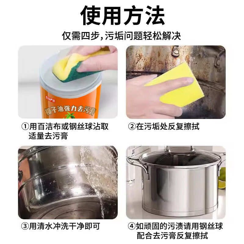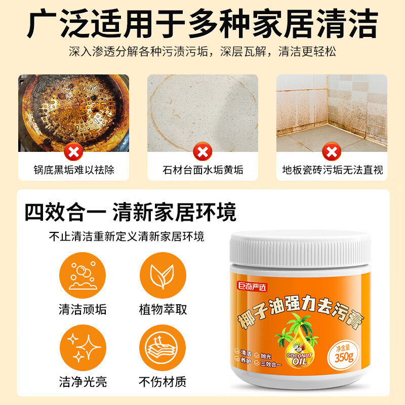 巨奇严选椰子油强力去污膏除垢神器锅底黑垢不锈钢清洁膏铁锅厨房
