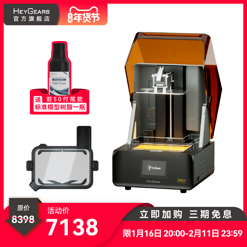 HeyGears/黑格Reflex RS Turbo光固化打印机定制琥珀屏大幅面桌面家用高精度快速3D打印机消费级手办模型
