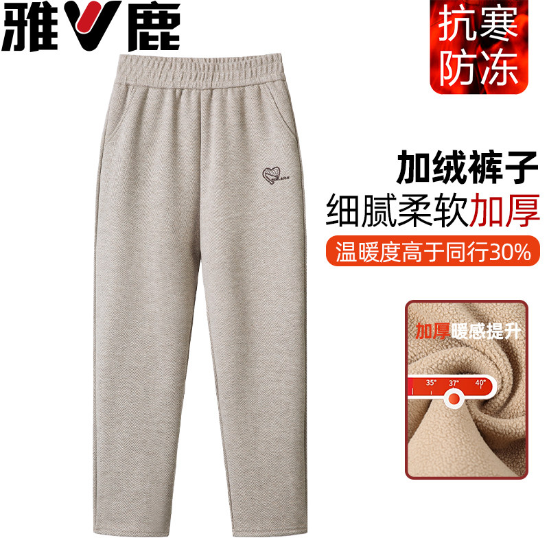 雅鹿妈妈裤子女新款冬季加厚宽松保暖中老年人奶奶棉裤春秋款加绒