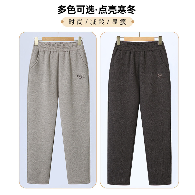 妈妈裤子春秋款松紧高腰弹力中老年女裤宽松大码直筒奶奶加绒长裤
