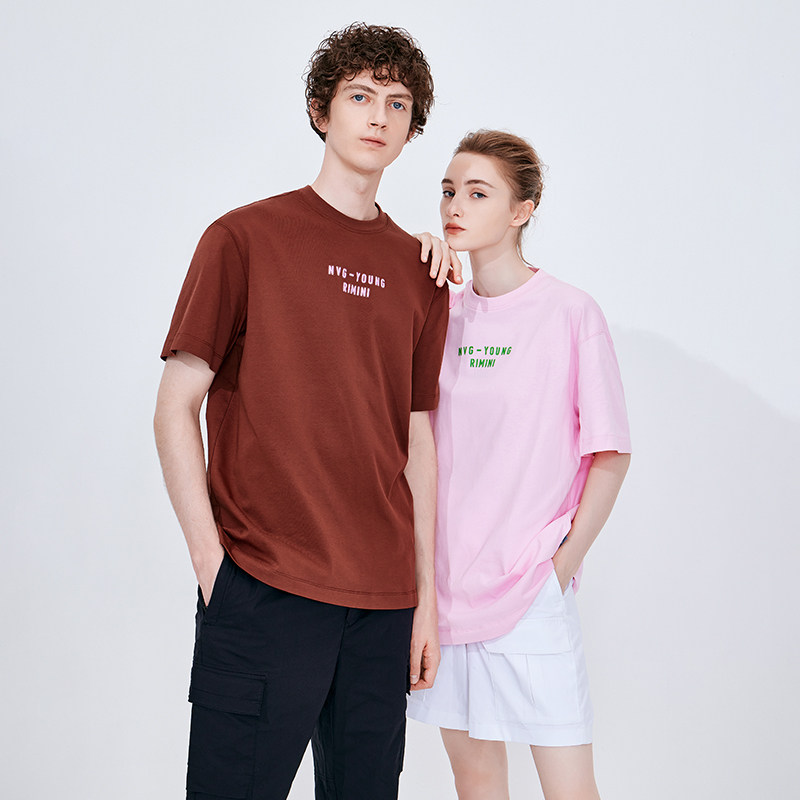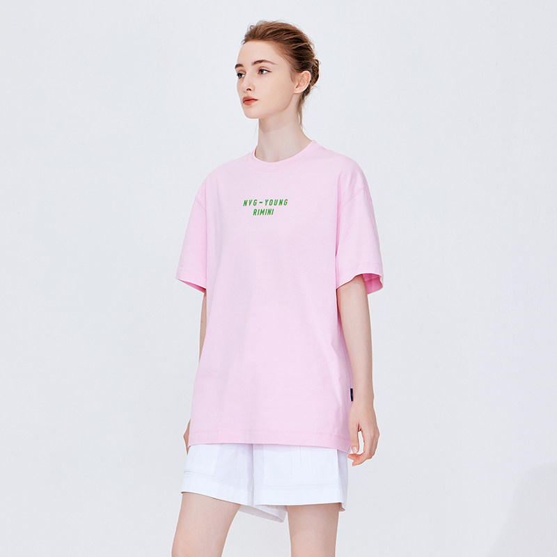 Navigare意大利小帆船粉色纯棉t恤女短袖休闲情侣圆领体恤夏