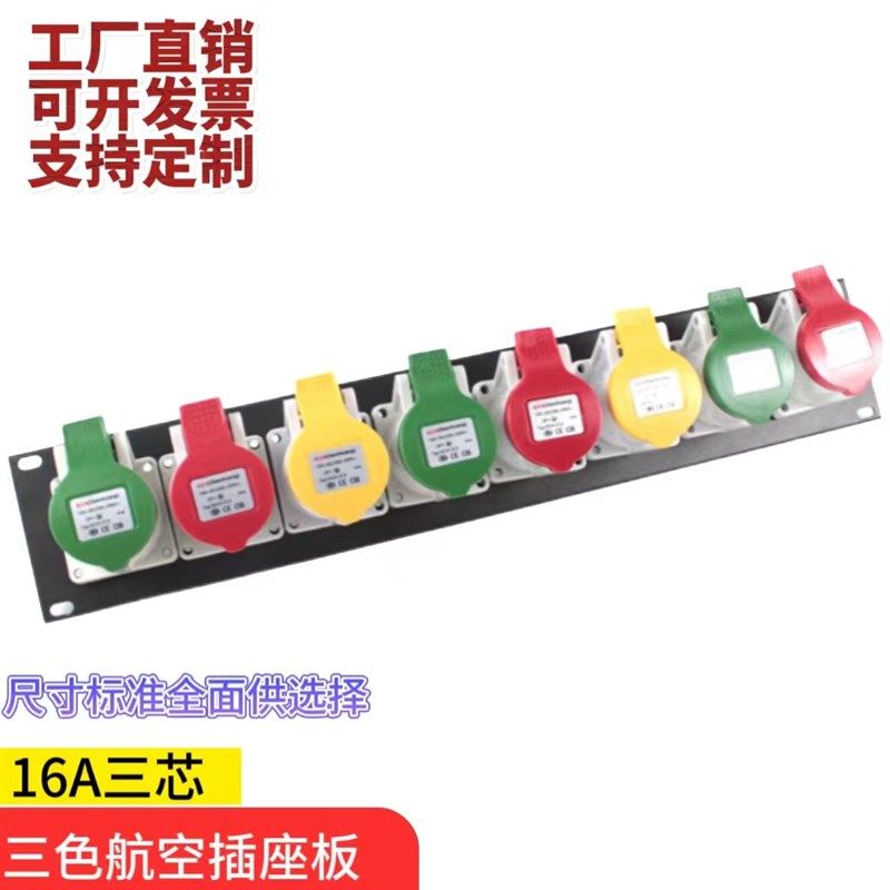 16A防水航天插座机柜U板电源插座板孔板直通箱直通柜电源显示表