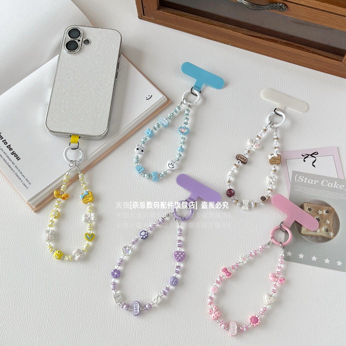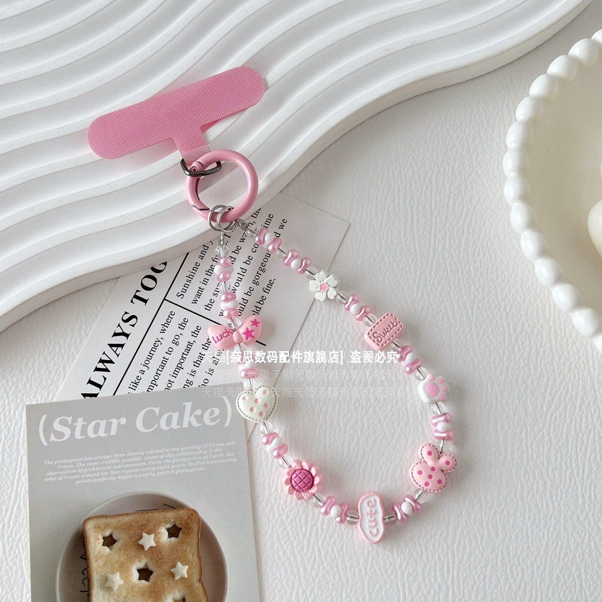 夏天超好看手机链可爱卡通ins风串珠挂链挂手腕多巴胺时尚手链高端网红2025新款感高颜值钥匙扣包挂件垫片壳