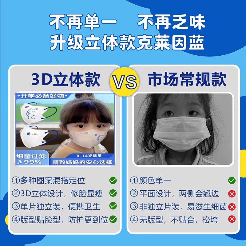 儿童KN95口罩4D立体学生卡通可爱小学生3到12岁四层防护独立包装