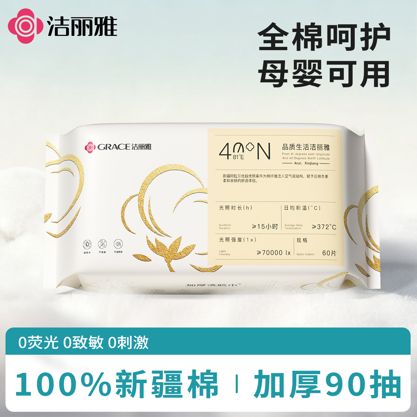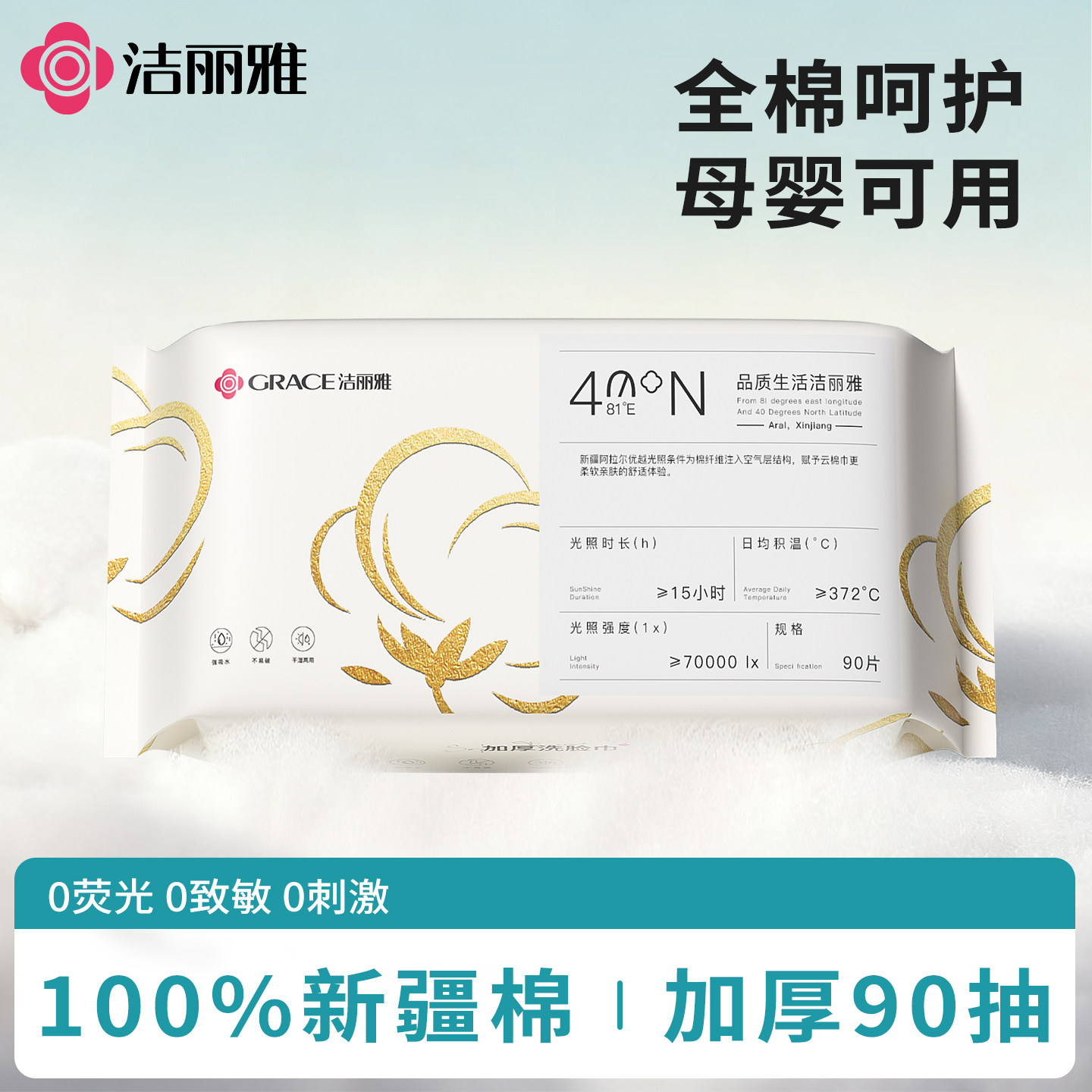 洁丽雅100%全棉洗脸巾一次性纯棉柔抽取式洁面巾母婴可用官方正品