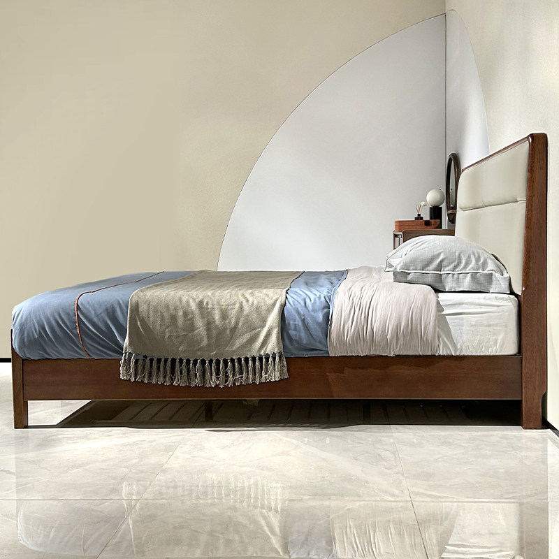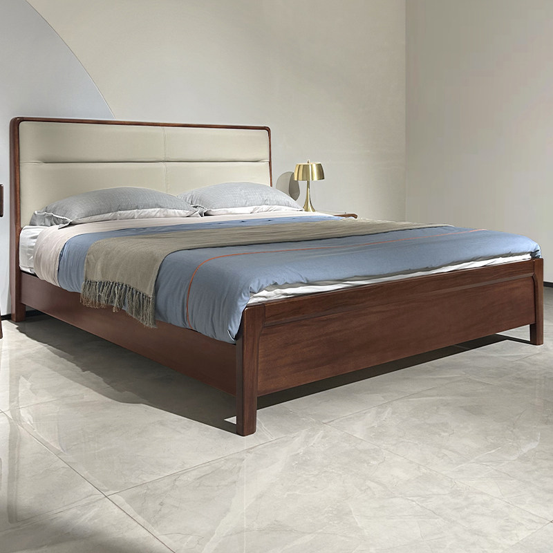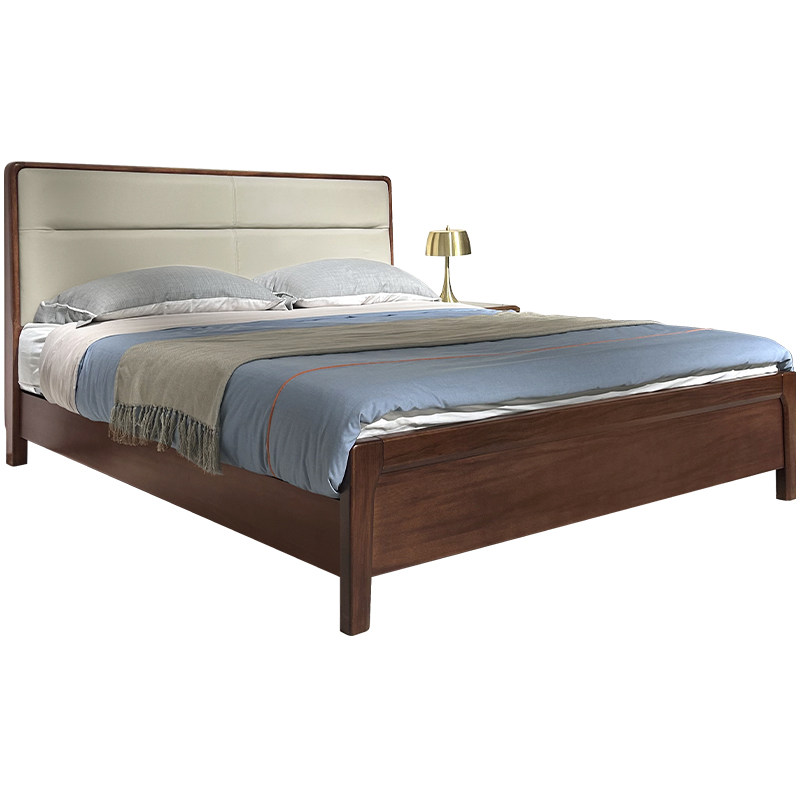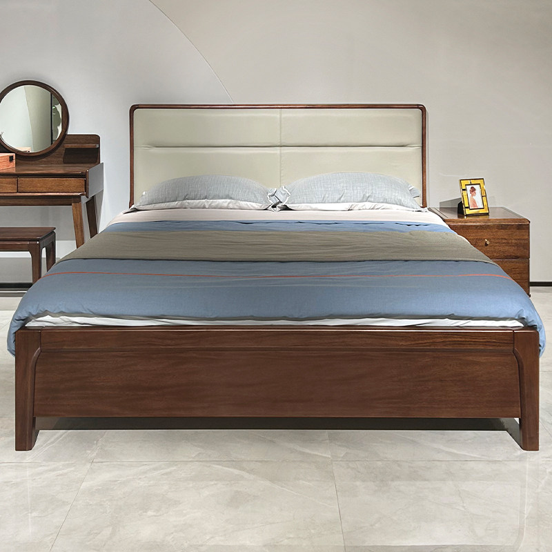 全实木床简约现代双人床1.8米1.5m软包靠背轻奢胡桃木主卧真皮床