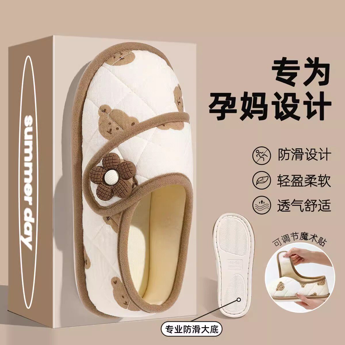 月子鞋春夏包跟薄款45月份孕妇家居软底防滑保暖棉拖鞋女四季产妇