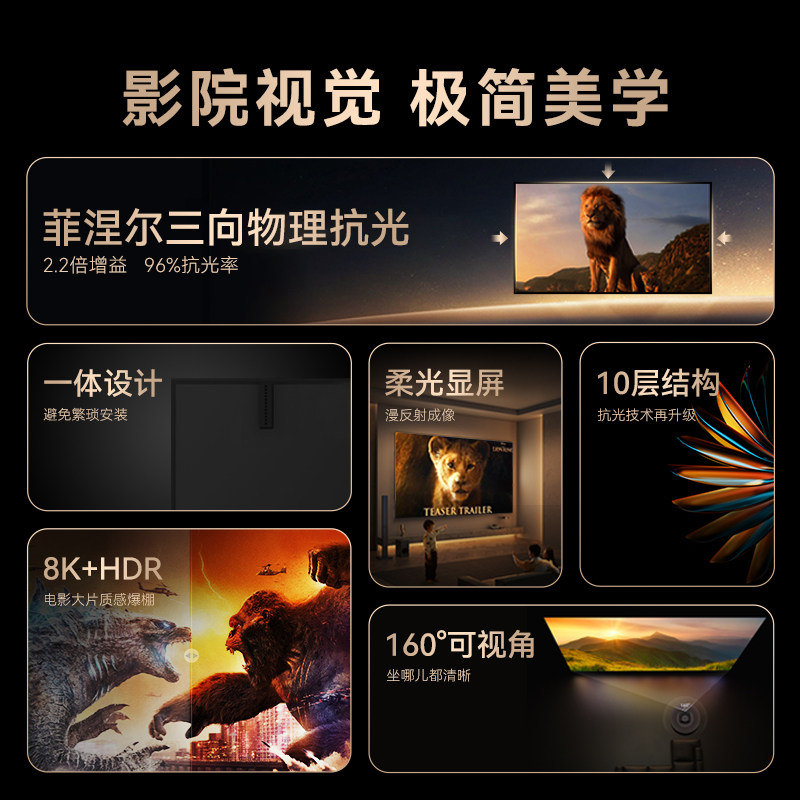 VCCG菲涅尔抗光幕布中长焦投影幕布 家庭影院超短焦激光电视抗光硬屏幕 家用超高清壁挂免打孔投影仪画框幕布