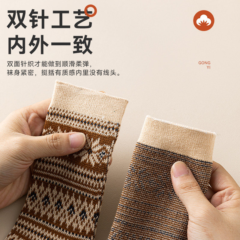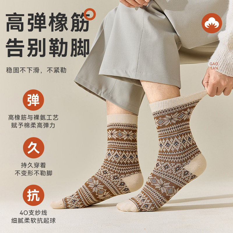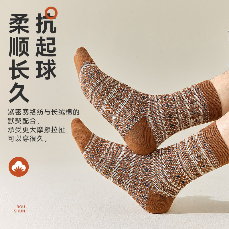 美拉德袜子男士秋冬季中筒纯棉加厚保暖复古民族风抗起球防臭毛圈