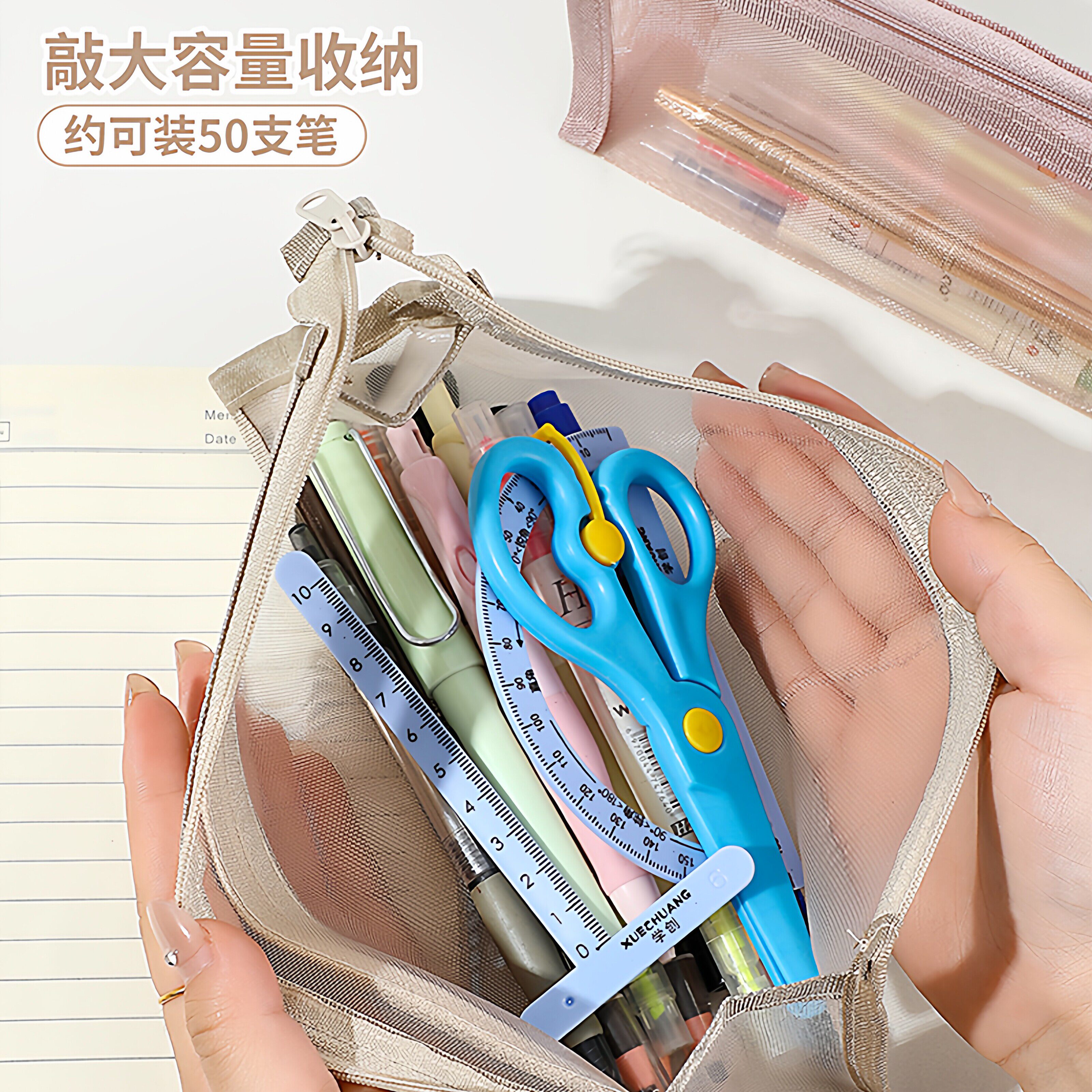 双层立体透明网纱笔袋考试专用新款大容量文具袋学生拉链收纳袋