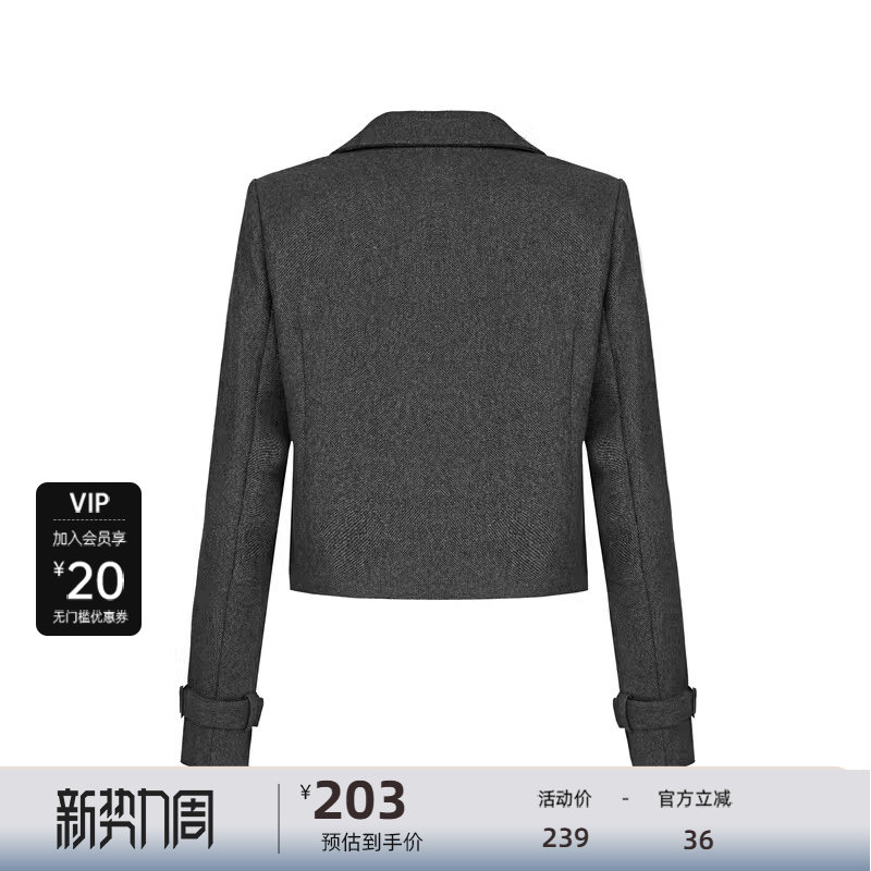 西装领 毛呢质地 单排扣