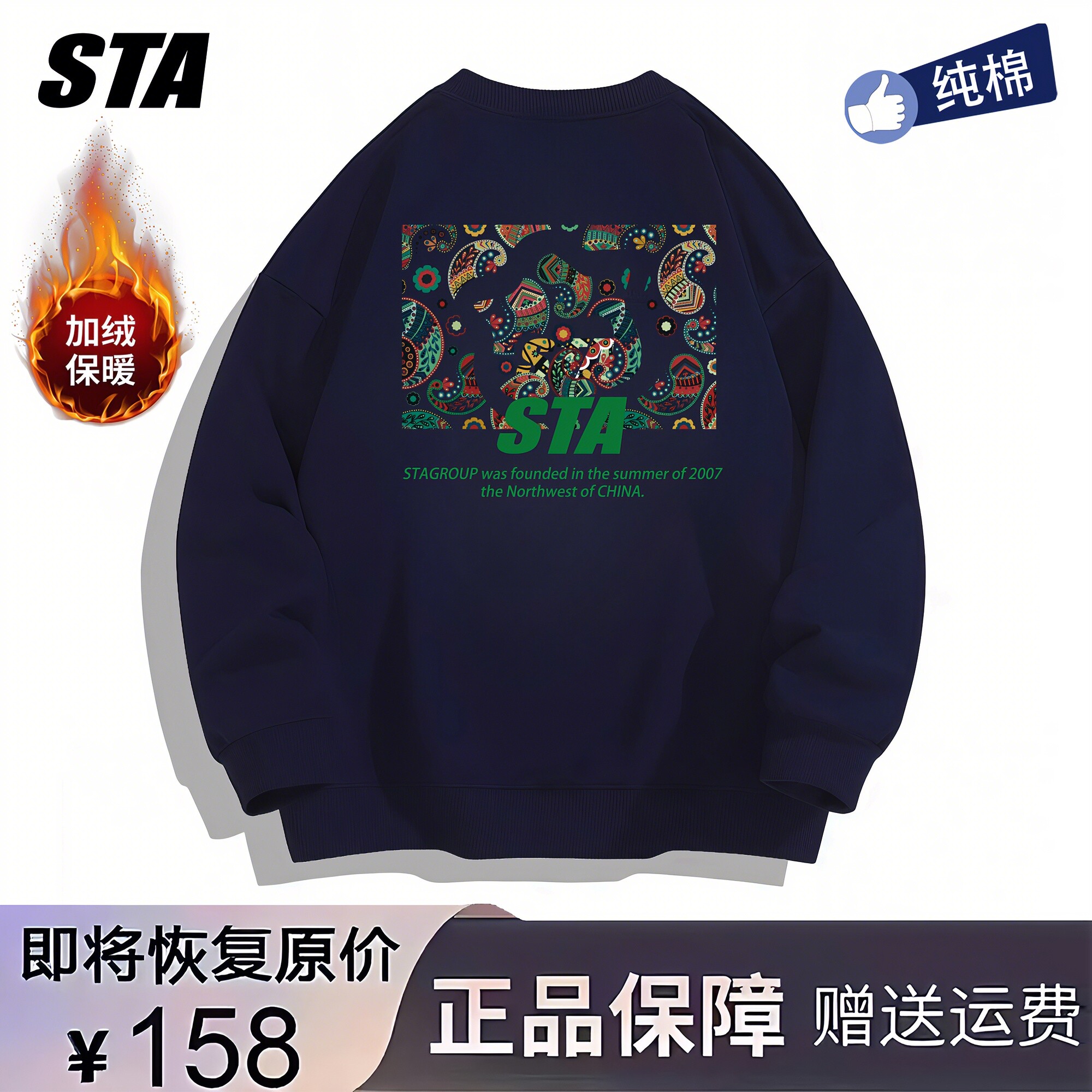 STA旗舰店腰花果设计卫衣男女美式潮牌街头复古重磅纯棉加绒上衣