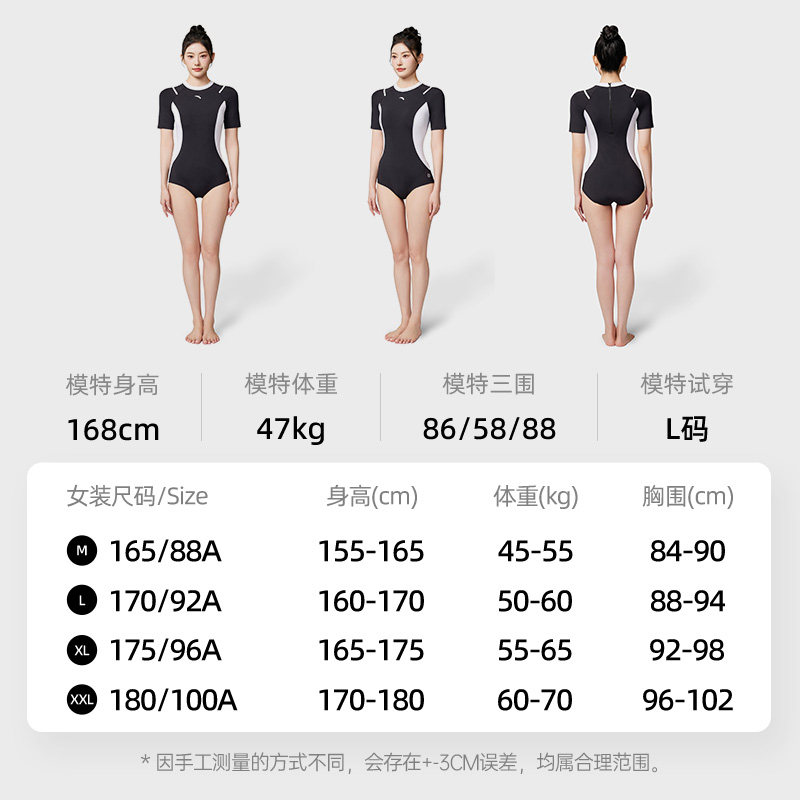 安踏运动泳衣防晒温泉度假显瘦遮肉长袖拉链连体泳装1824532472