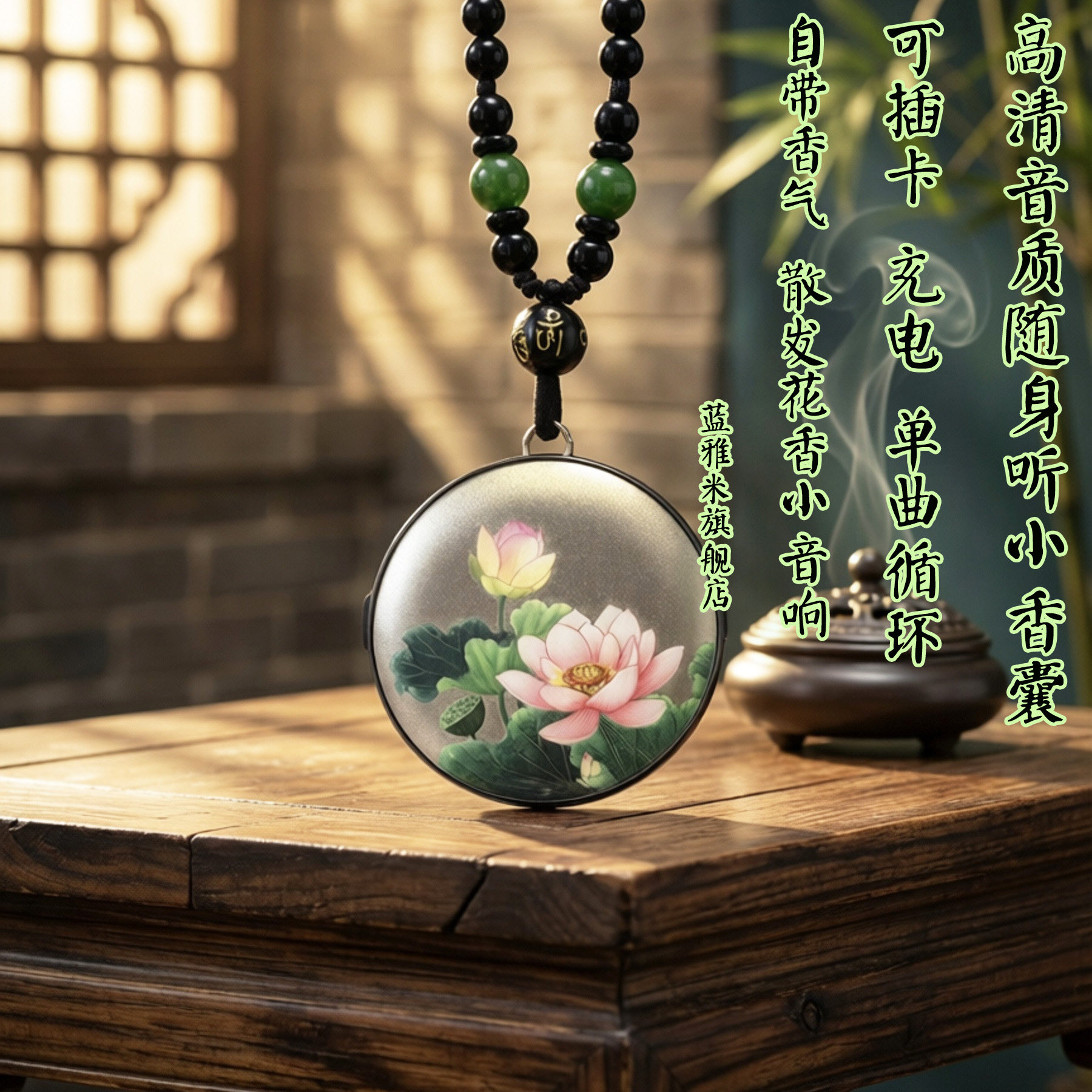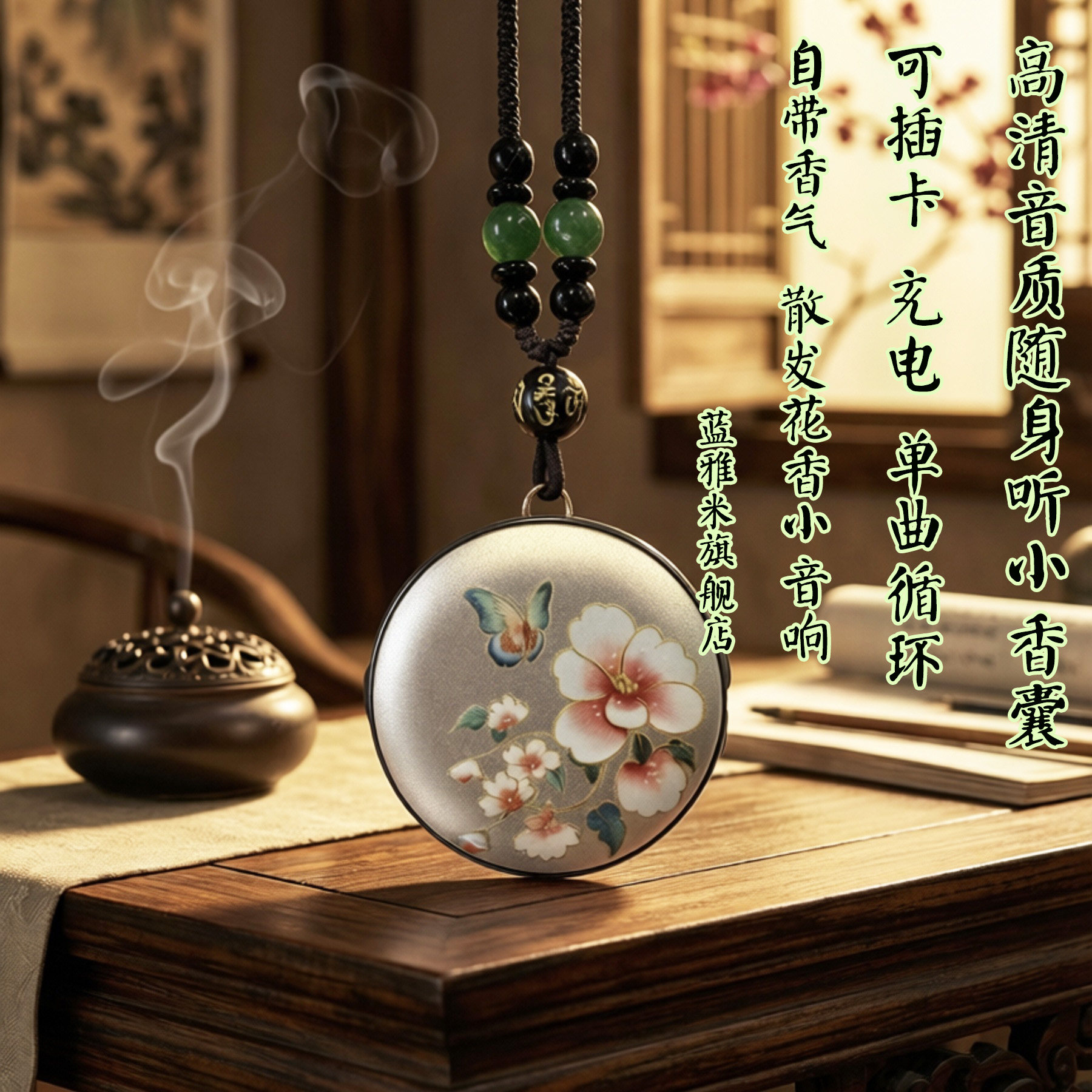 檀木香囊花开富贵高山流水迷你小吊坠国风随身听可插卡蓝牙古筝琴