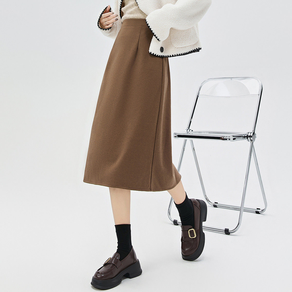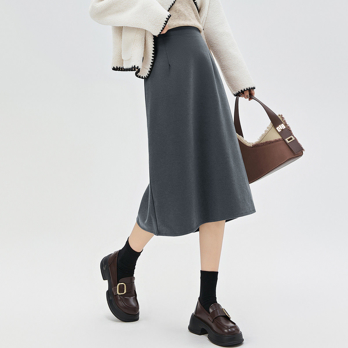 【所有女生的衣橱直播间】极尔斯 斜纹半身裙/高领T恤