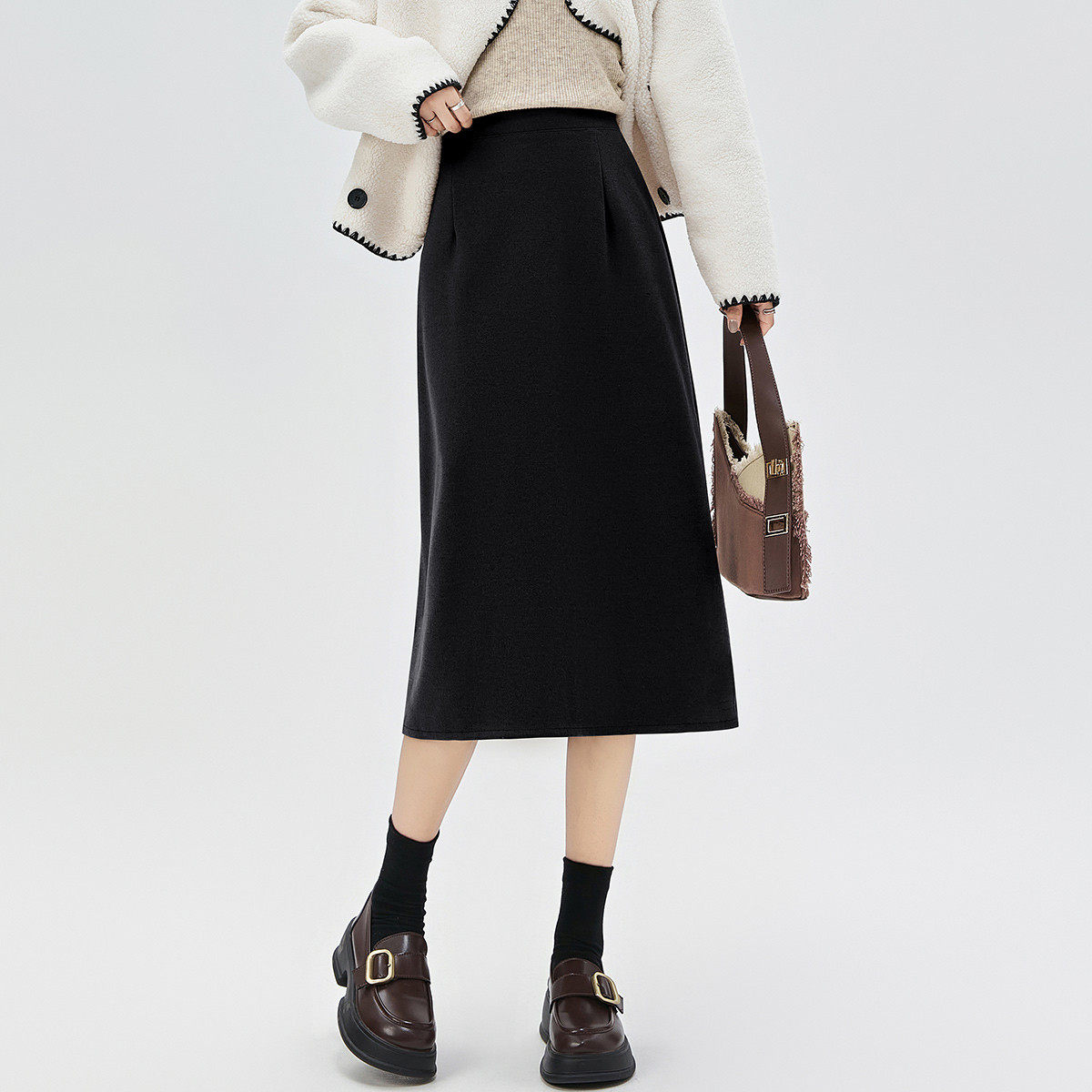 SIINSIIN直筒裙加绒2025年新款高腰收腹半身裙女黑色显瘦A字裙tk