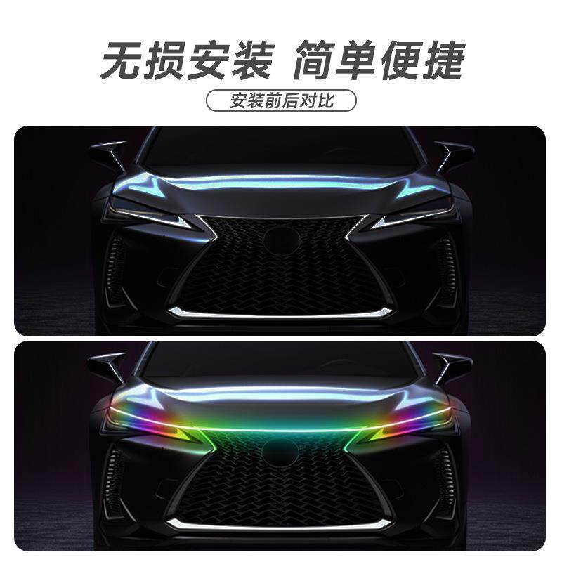 汽车启动扫描流光转向贯穿日行灯led动态机盖灯引擎盖装饰灯带