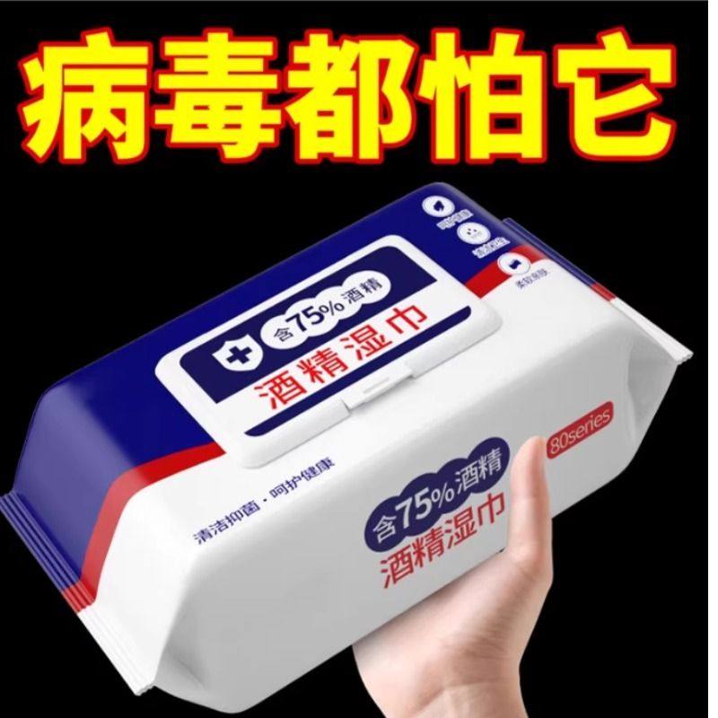 80抽含75度酒精湿巾消毒办公家用清洁卫生杀菌专用湿纸巾大包抑菌