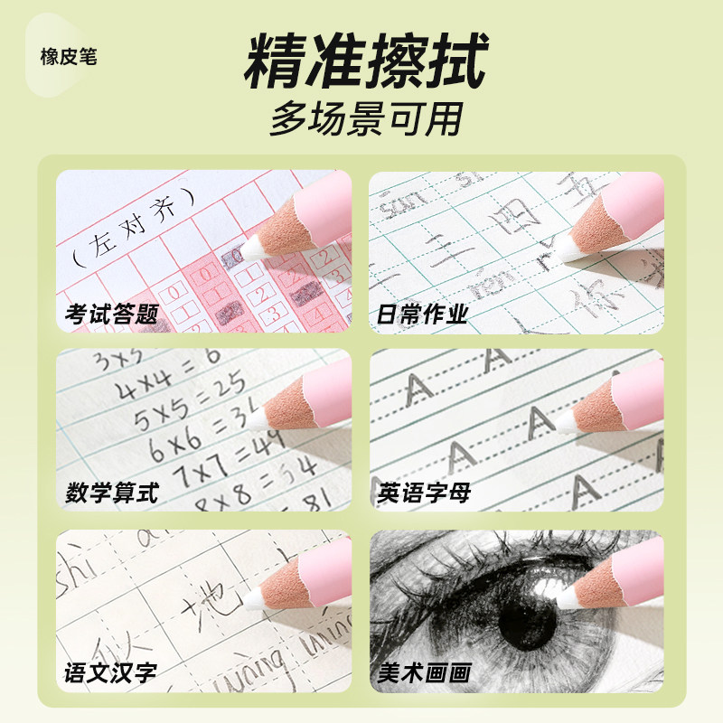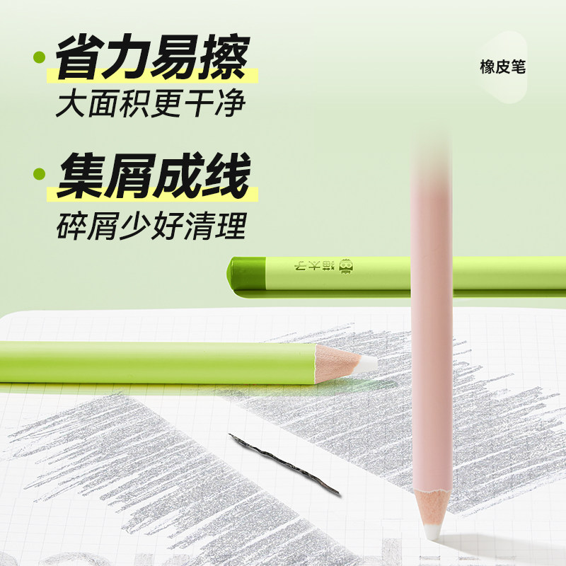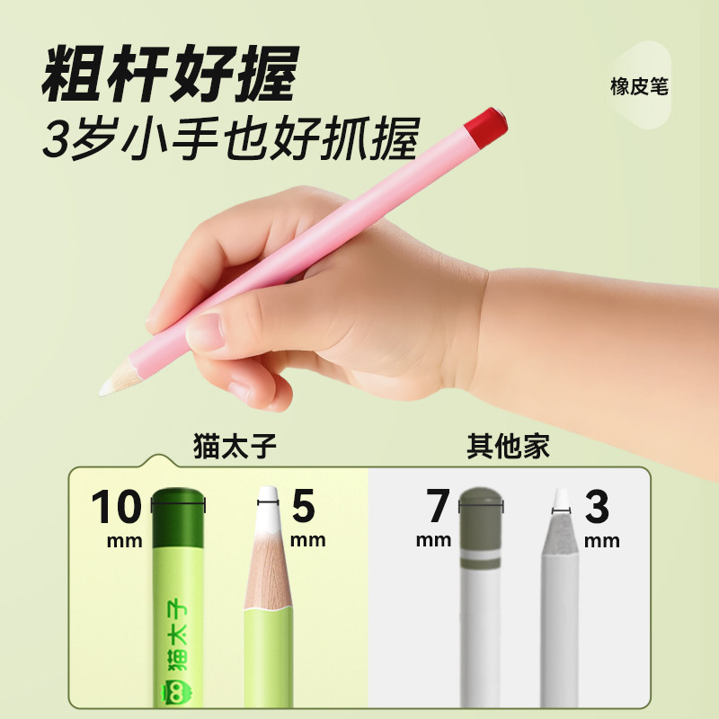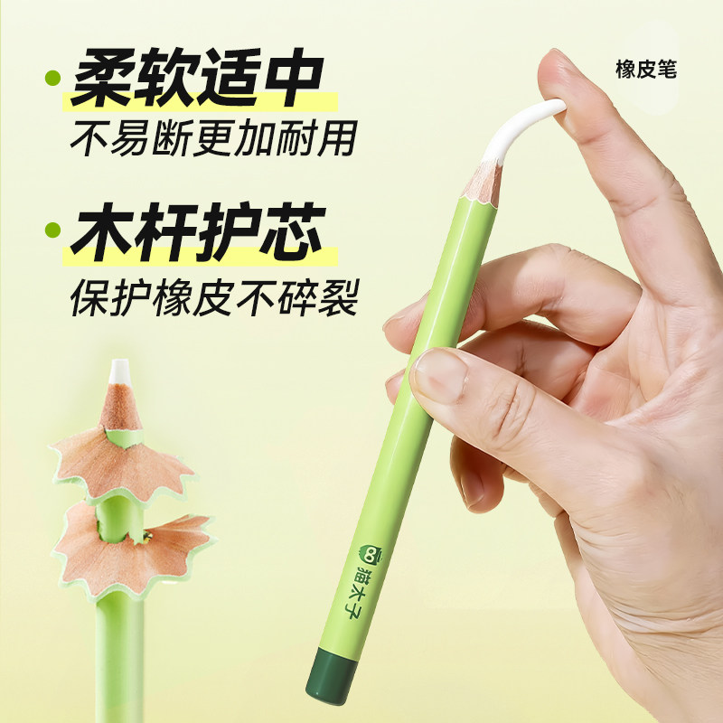 猫太子铅笔型橡皮擦粗杆橡皮笔可擦笔无屑超干净小学生考试美术生专用绘画素描儿童幼儿园无毒精准擦拭成线式