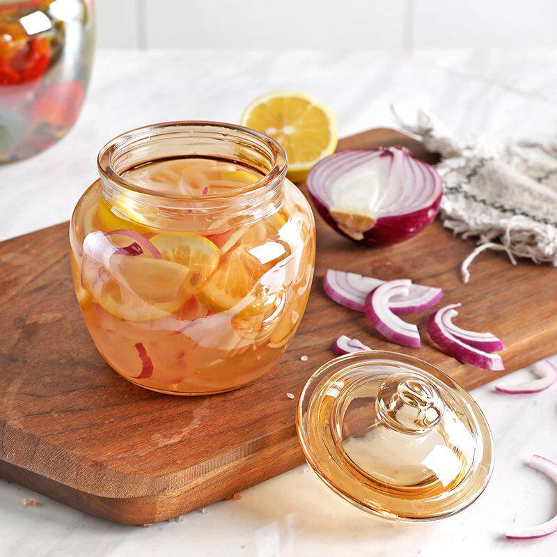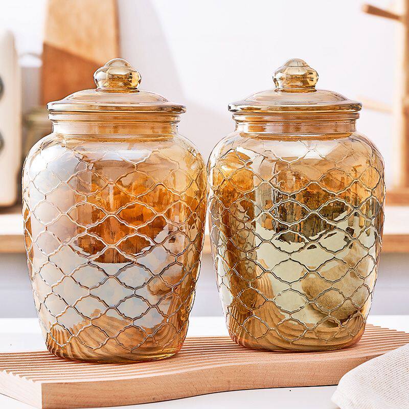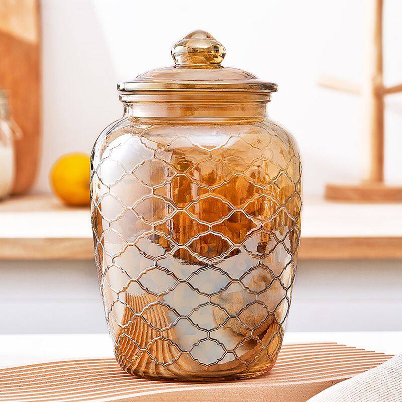 琥珀色玻璃密封罐蜂蜜柠檬百香果大号带盖厨房食品家用储物罐