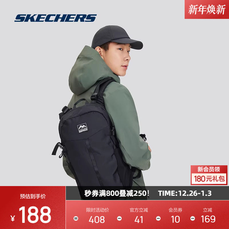 斯凯奇新品男女款户外背包轻量防泼水舒适双肩背包时尚百搭
