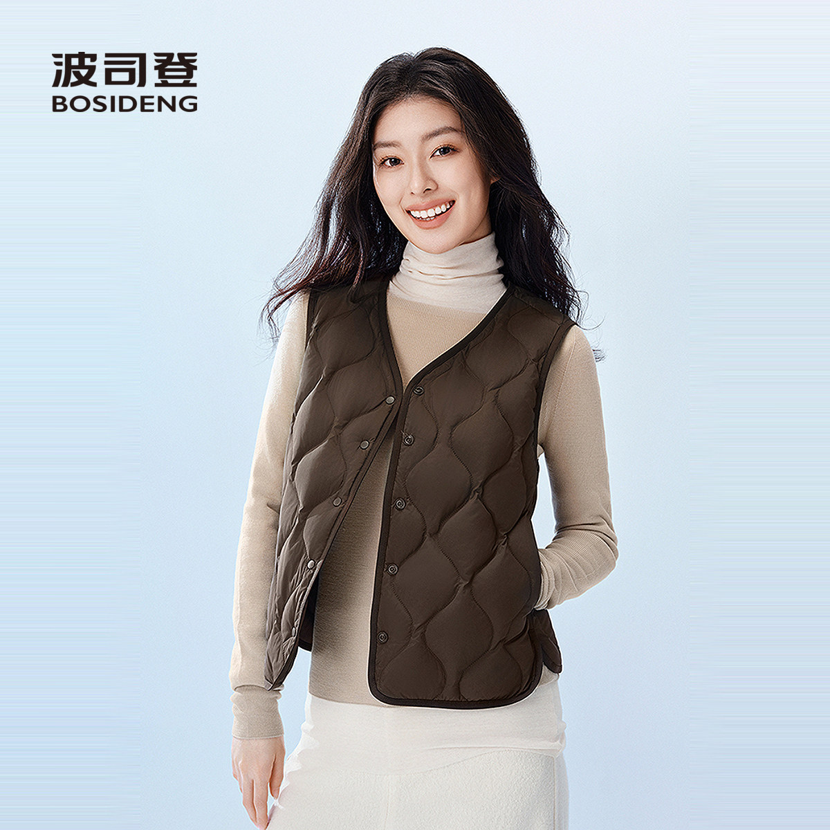 波司登秋季男女居家羽绒背心轻暖V领羽绒内胆休闲舒适显瘦马甲