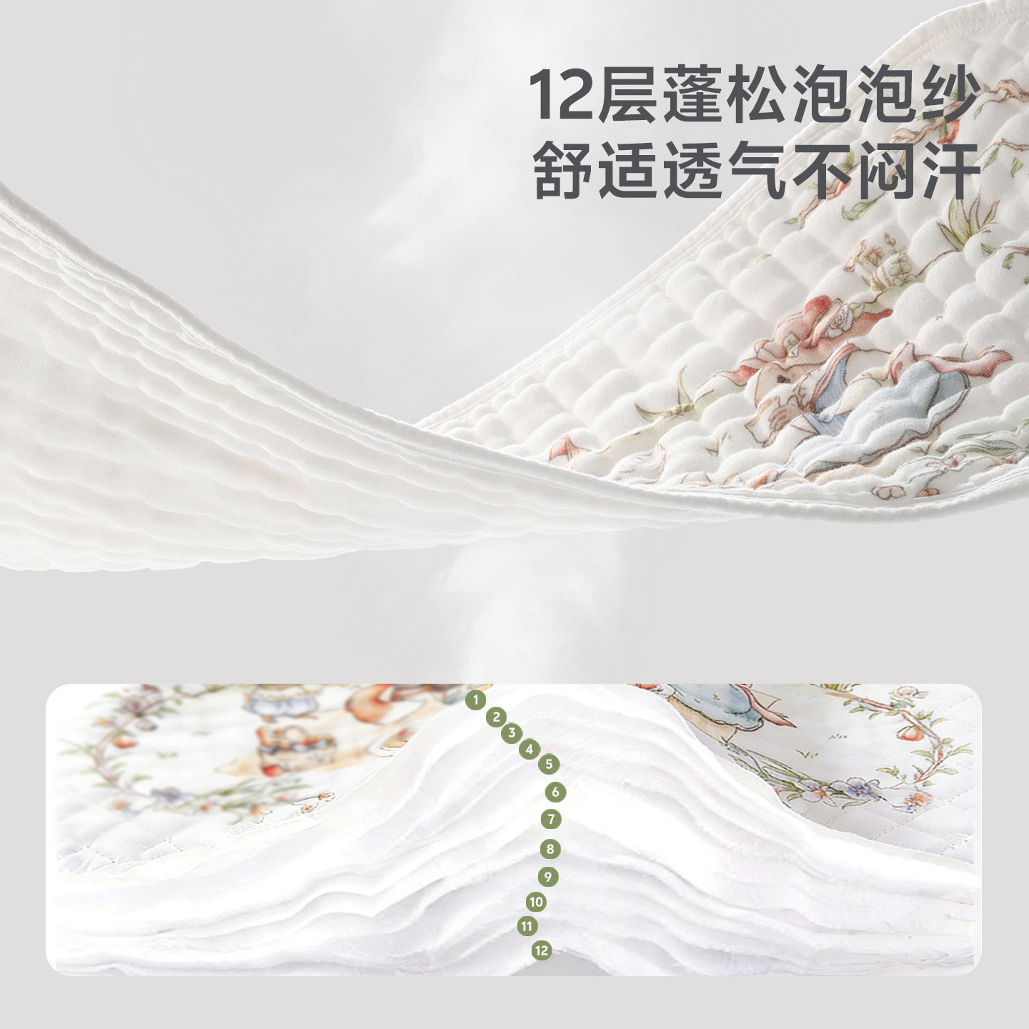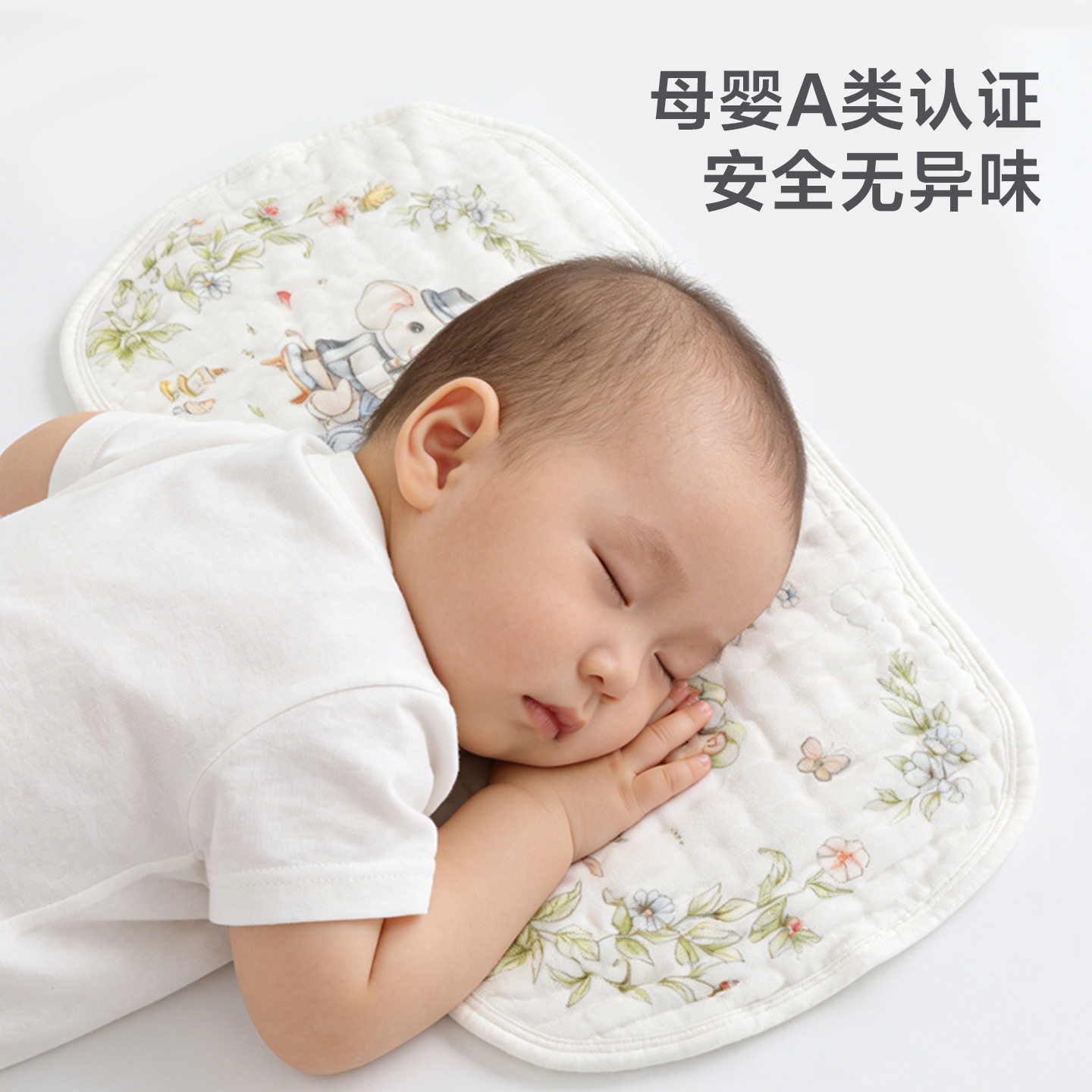 贝肽斯新生儿云片枕头婴儿纯棉纱透气吸汗宝宝0到6个月防吐奶枕巾