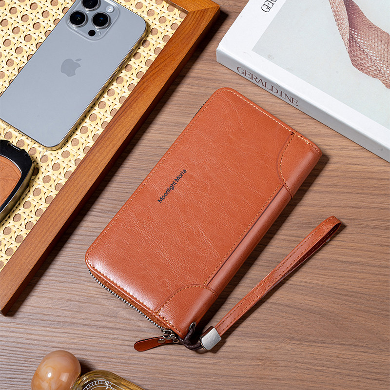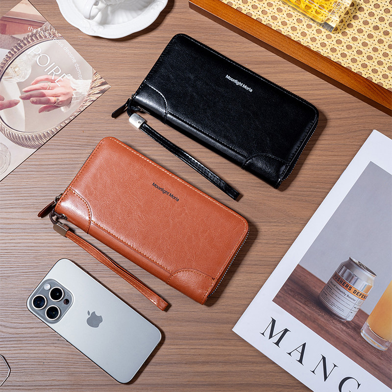 2025新款长款双拉链钱包男士护照皮夹软皮大容量真皮质感手包商务