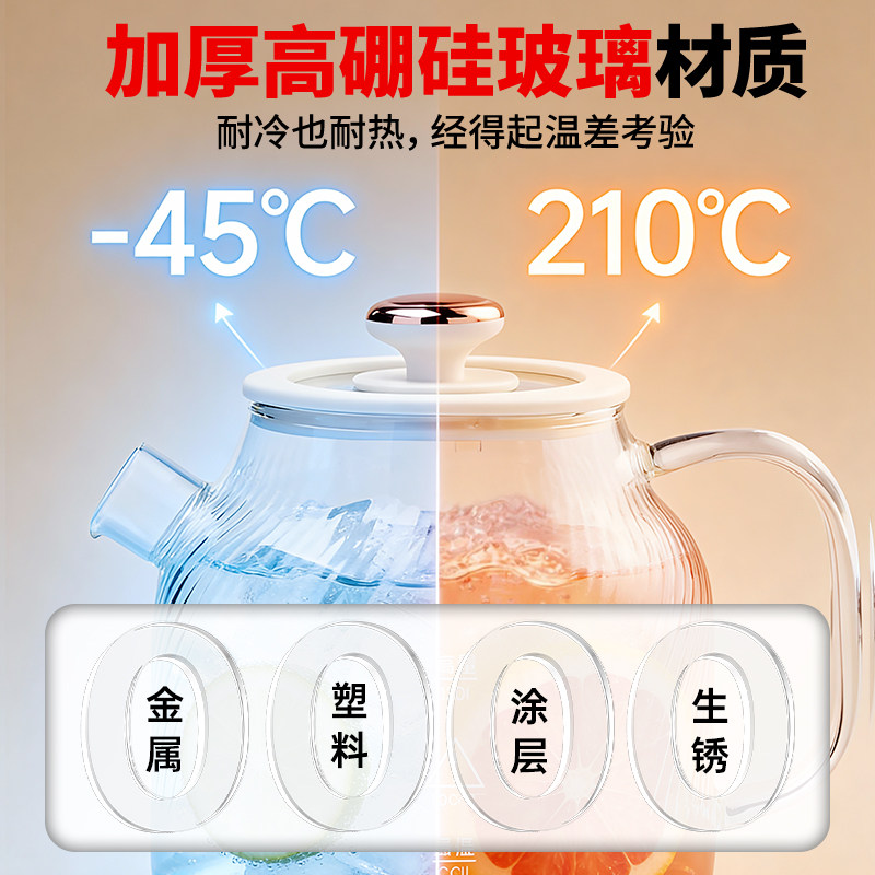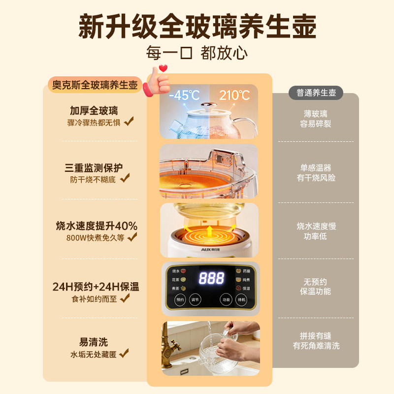 奥克斯全玻璃养生壶纯玻璃煮茶壶多功能恒温电热水壶保温烧水炖煮