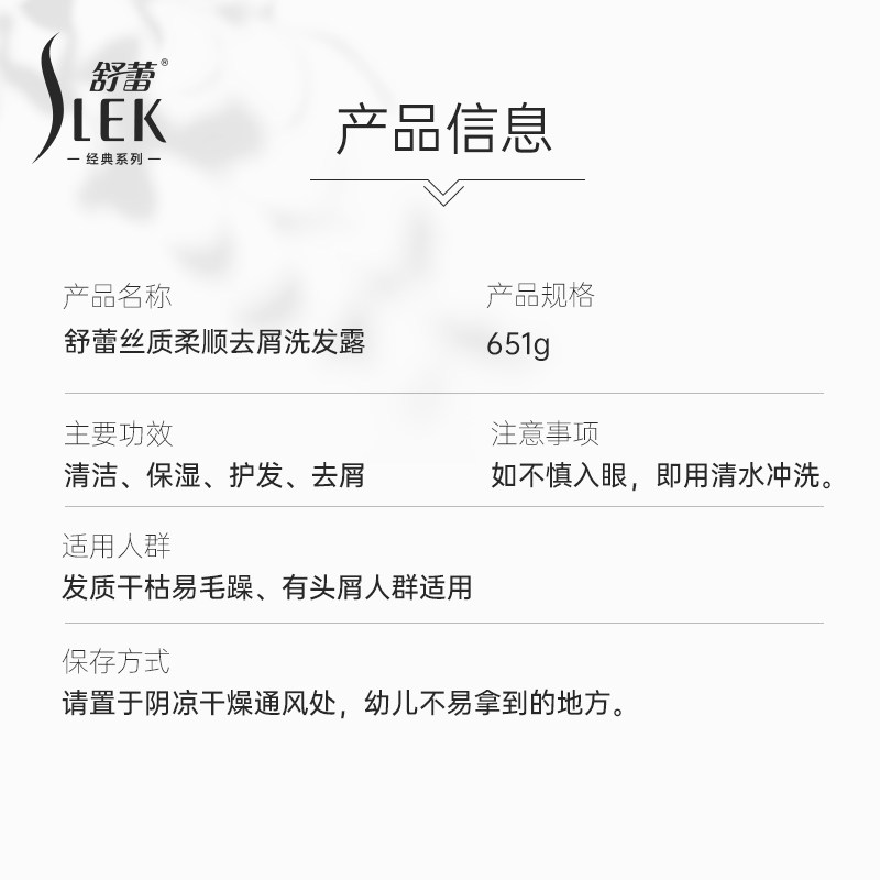 舒蕾蚕丝丝质顺滑去屑洗发水露651g控油蓬松改善毛躁洗发膏柔顺