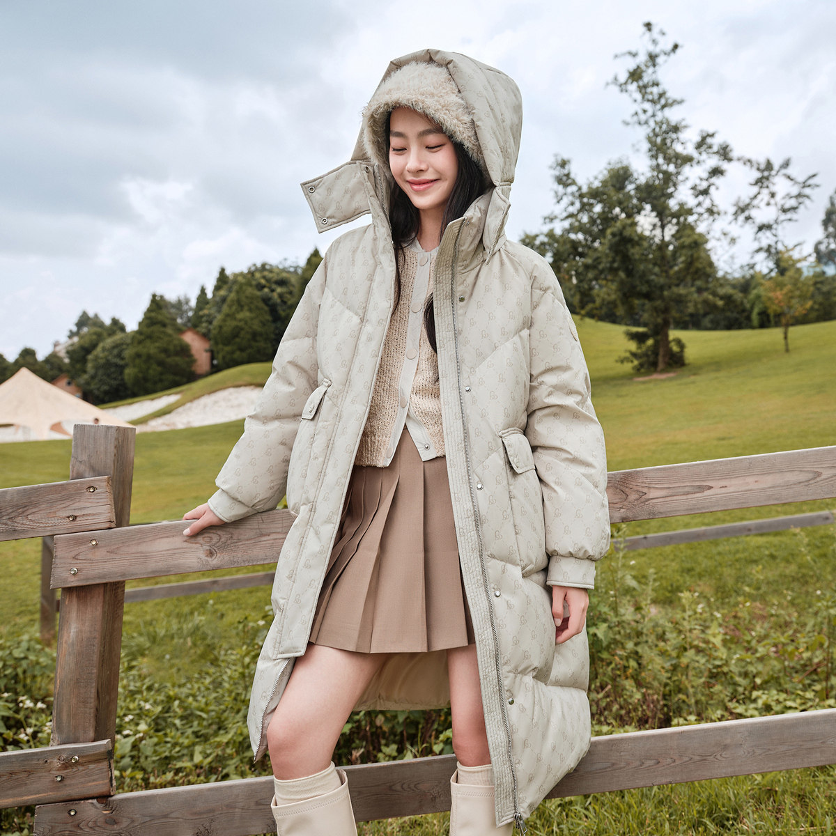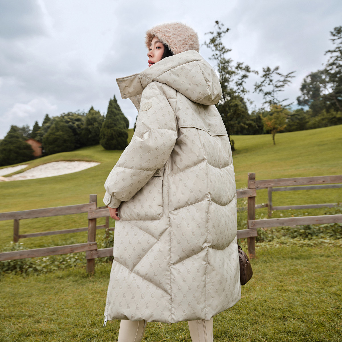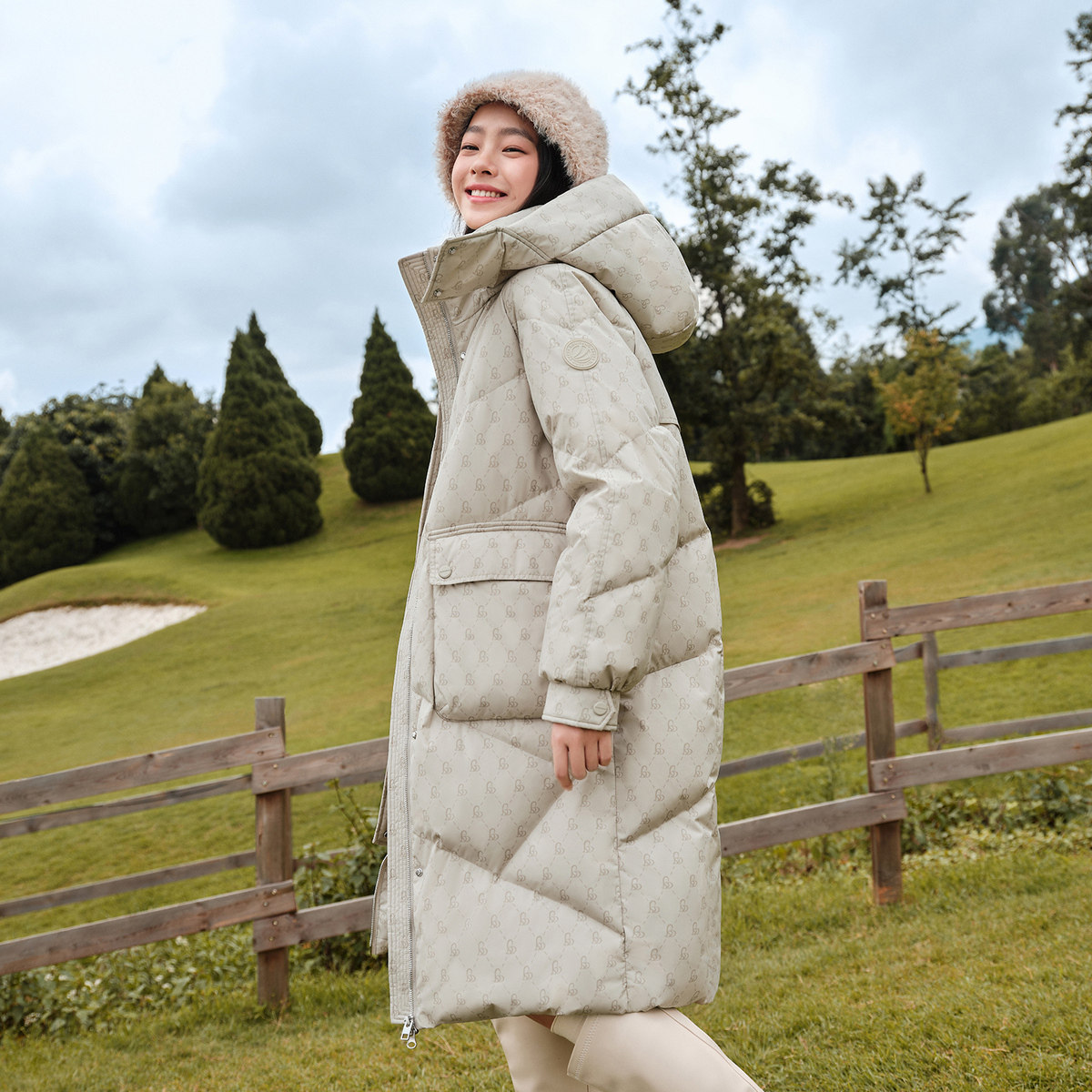 波司登2024冬季女中长款时尚加厚老花字母印花休闲连帽羽绒服