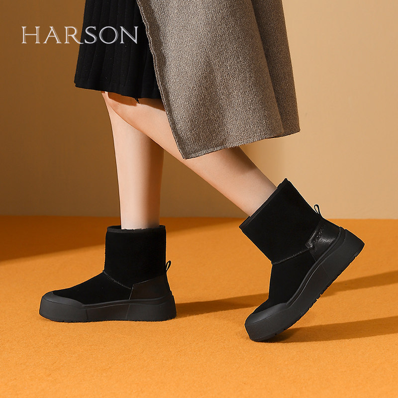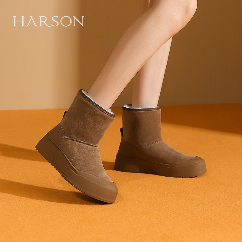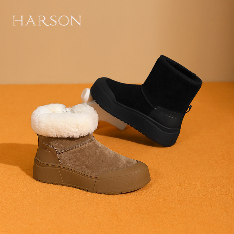 哈森厚底雪地靴女冬季新款保暖棉鞋加绒休闲毛毛鞋HA246126
