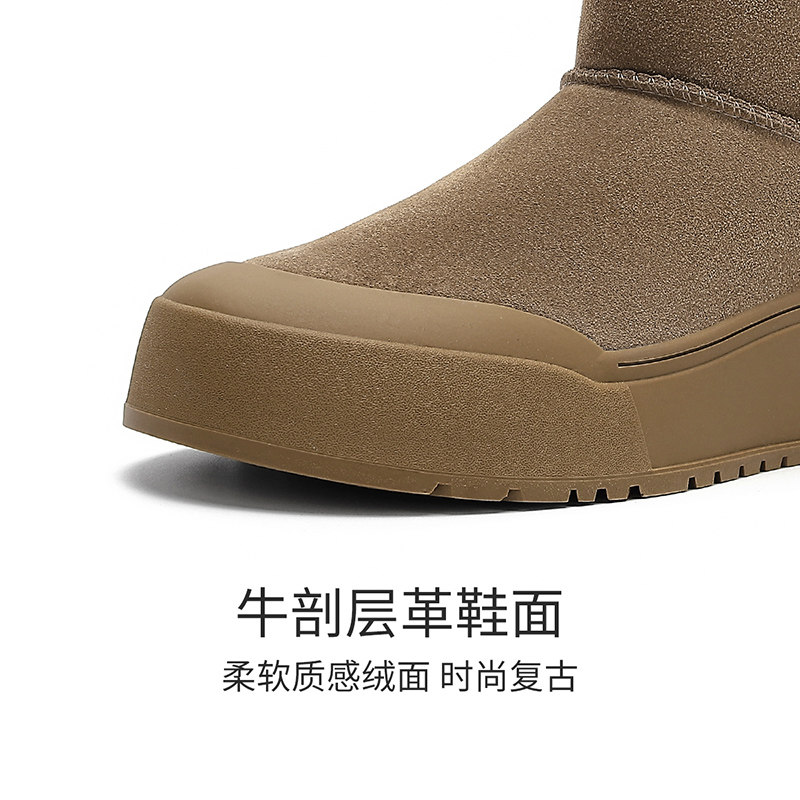 真皮雪地靴女冬季加绒加厚防滑中筒厚底软底皮面短筒学生棉鞋增高