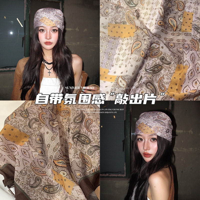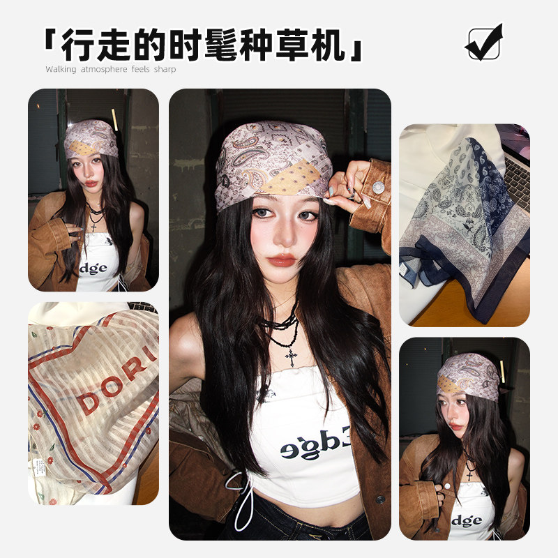 美式复古头巾女辣妹绑发方巾丝巾hiphop街舞嘻哈包头巾薄欧美氛围